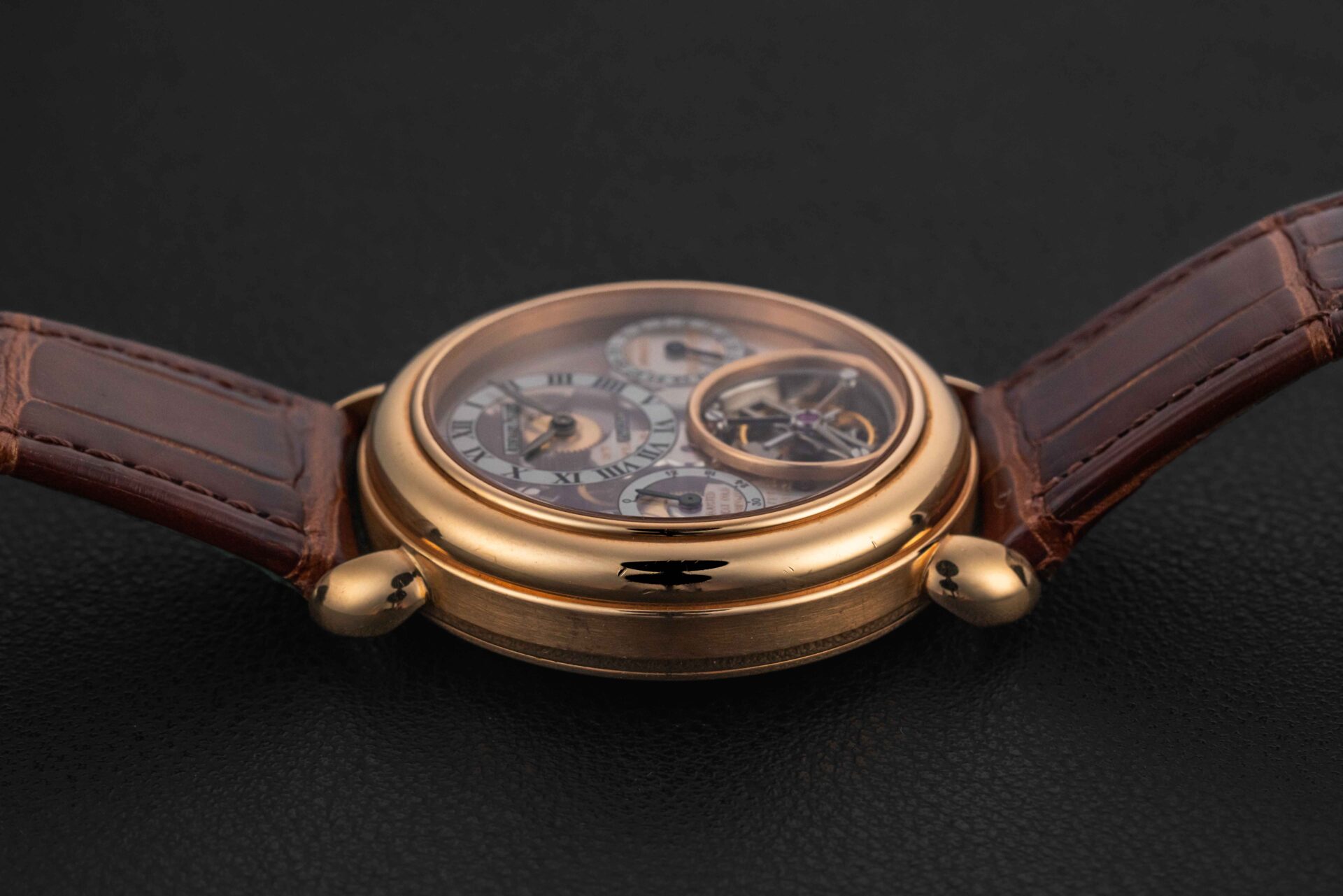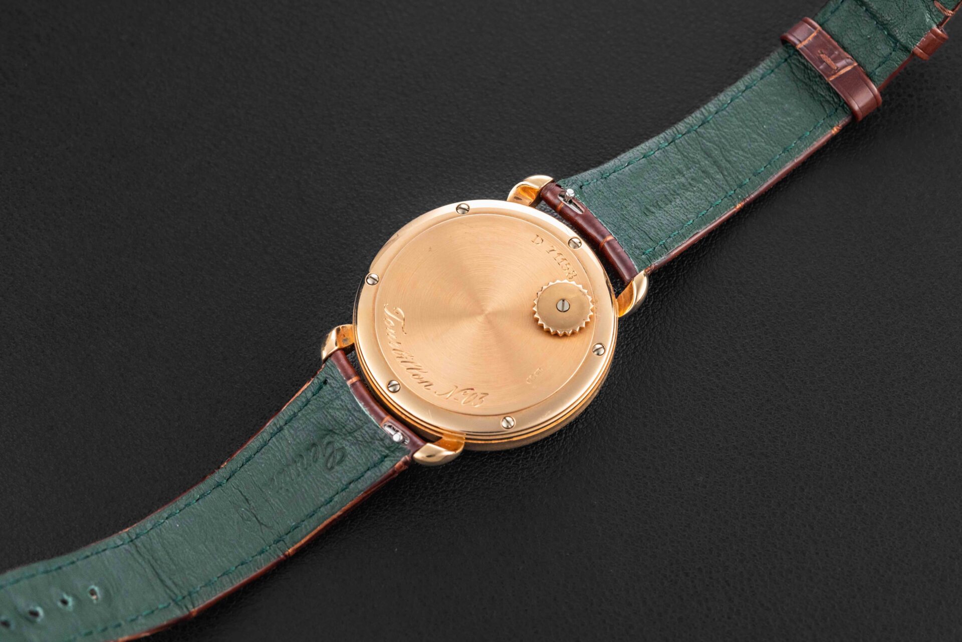Offered for sale is a very rare Audemars Piguet Tourbillon watch from their Jules Audemars Reserve de Marche line, reference 25718OR, circa 1990s, housed in rose gold case with openworked or “skeletonized” dial. This model is fitted in a 39mm case, and features a date, power reserve (“reserve de marche”) and tourbillon complications. The watch itself is in great vintage condition, unpolished with minor signs of wear. The watch comes with its original Audemars Piguet matching tang buckle.