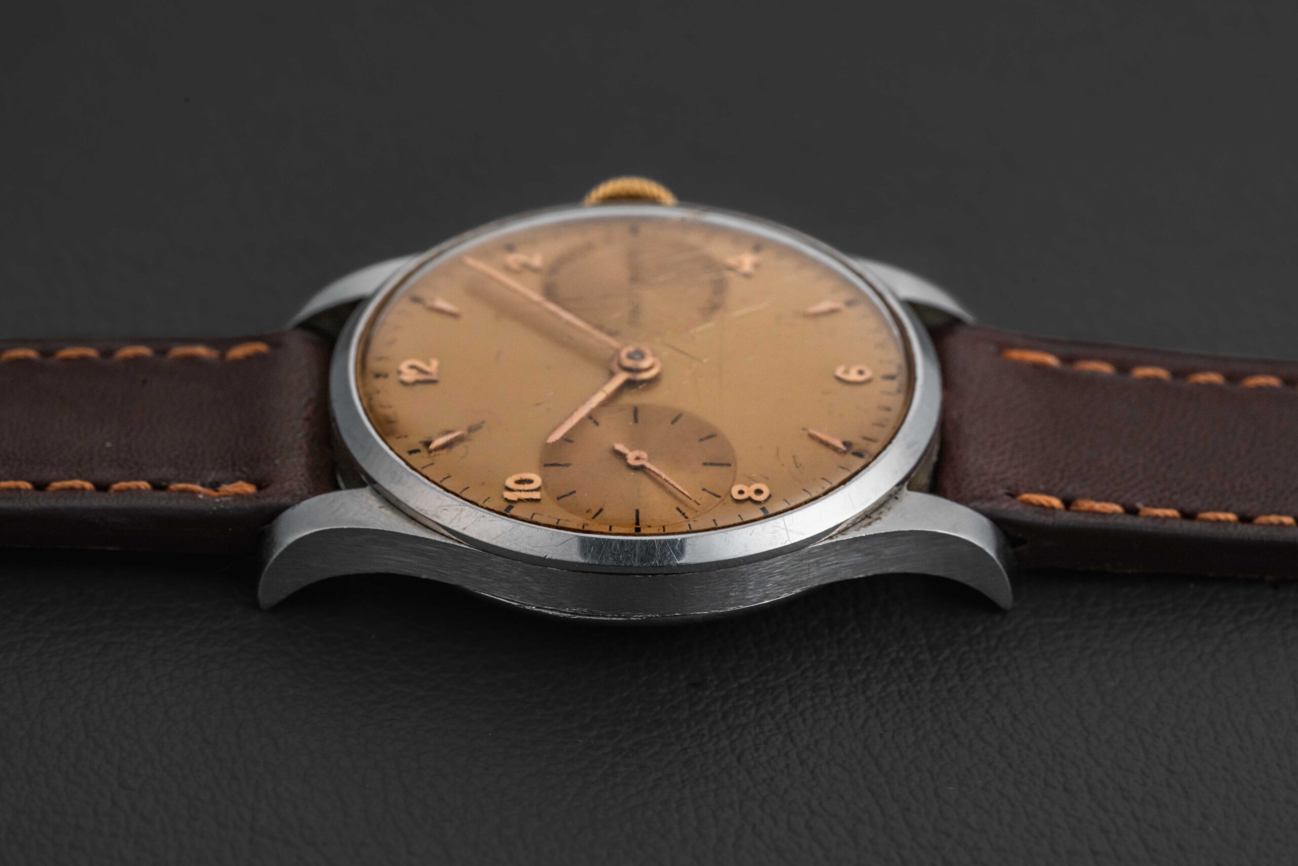 This Audemars Piguet Precision is very well-preserved for its age and rarity. The steel case does not show any signs of polishing, remaining thick, even, and sharp. Further, the original dial presents well, showing some light aging/wear, consistent with other known 1940s Precisions known to the market. Lastly, the watch still shockingly retains its original crystal.