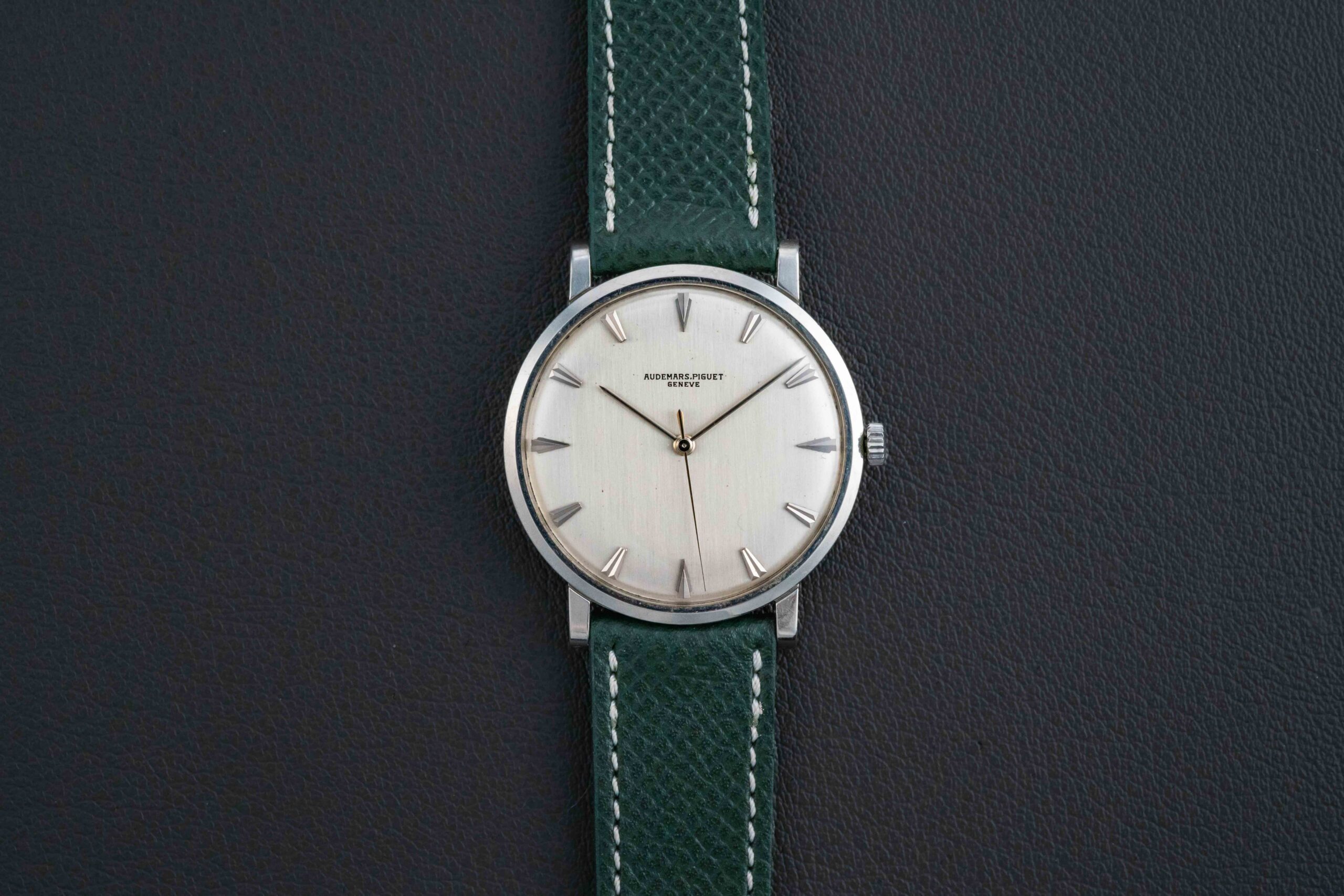 Up for grabs is an extremely rare Audemars Piguet Ultra-Thin dresswatch, circa 1960, produced in platinum. Interestingly, and as confirmed by Audemars Piguet in a Certificate of Authenticity, this watch was assembled in Japan, with the dial and movement delivered by Audemars Piguet to their local retailer in 1960. This was likely done due to export restriction on precious metals at the time, and has been seen in other brands, such as IWC. The watch is powered by a caliber 2002 movement, which produced by LeCoultre at the time.