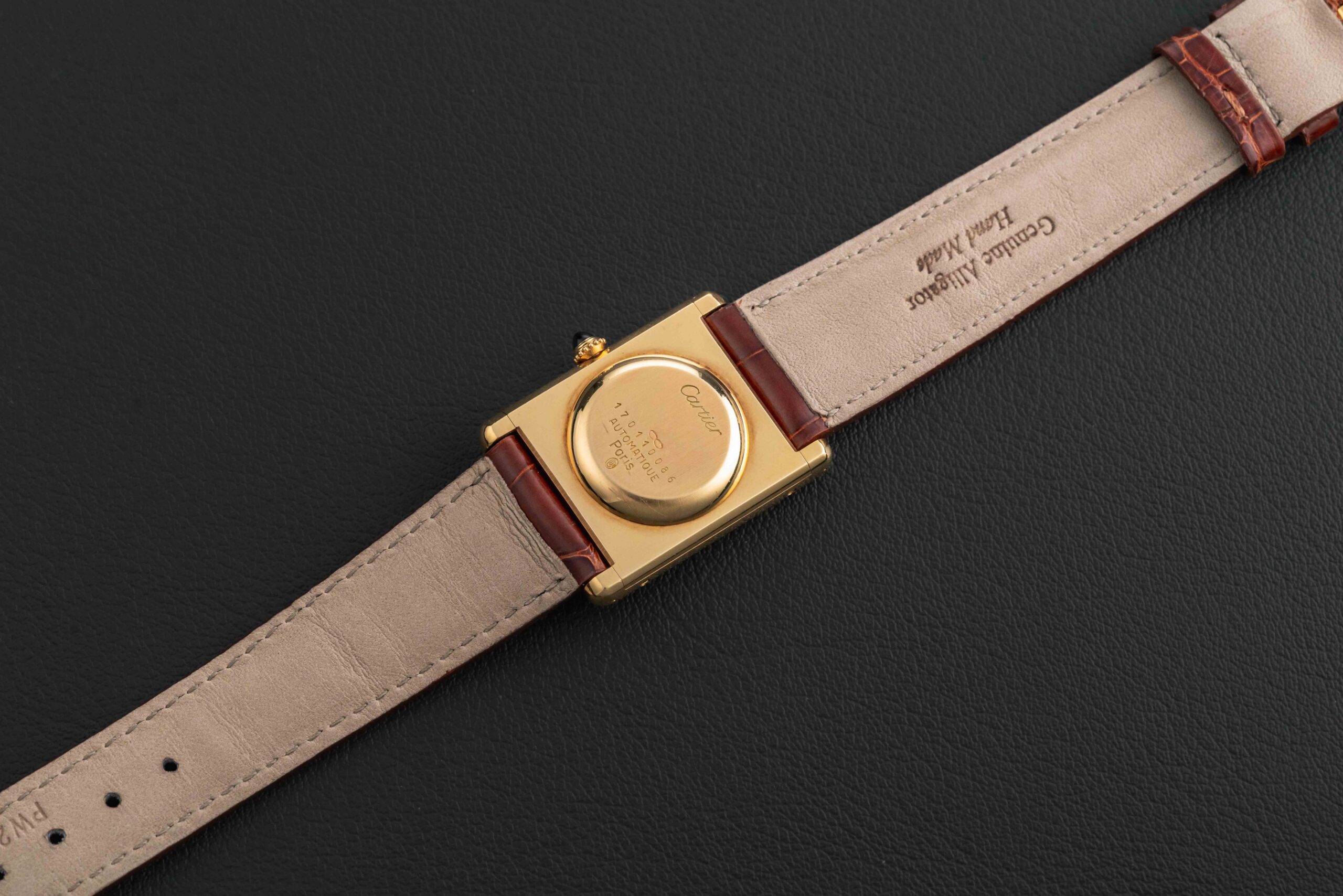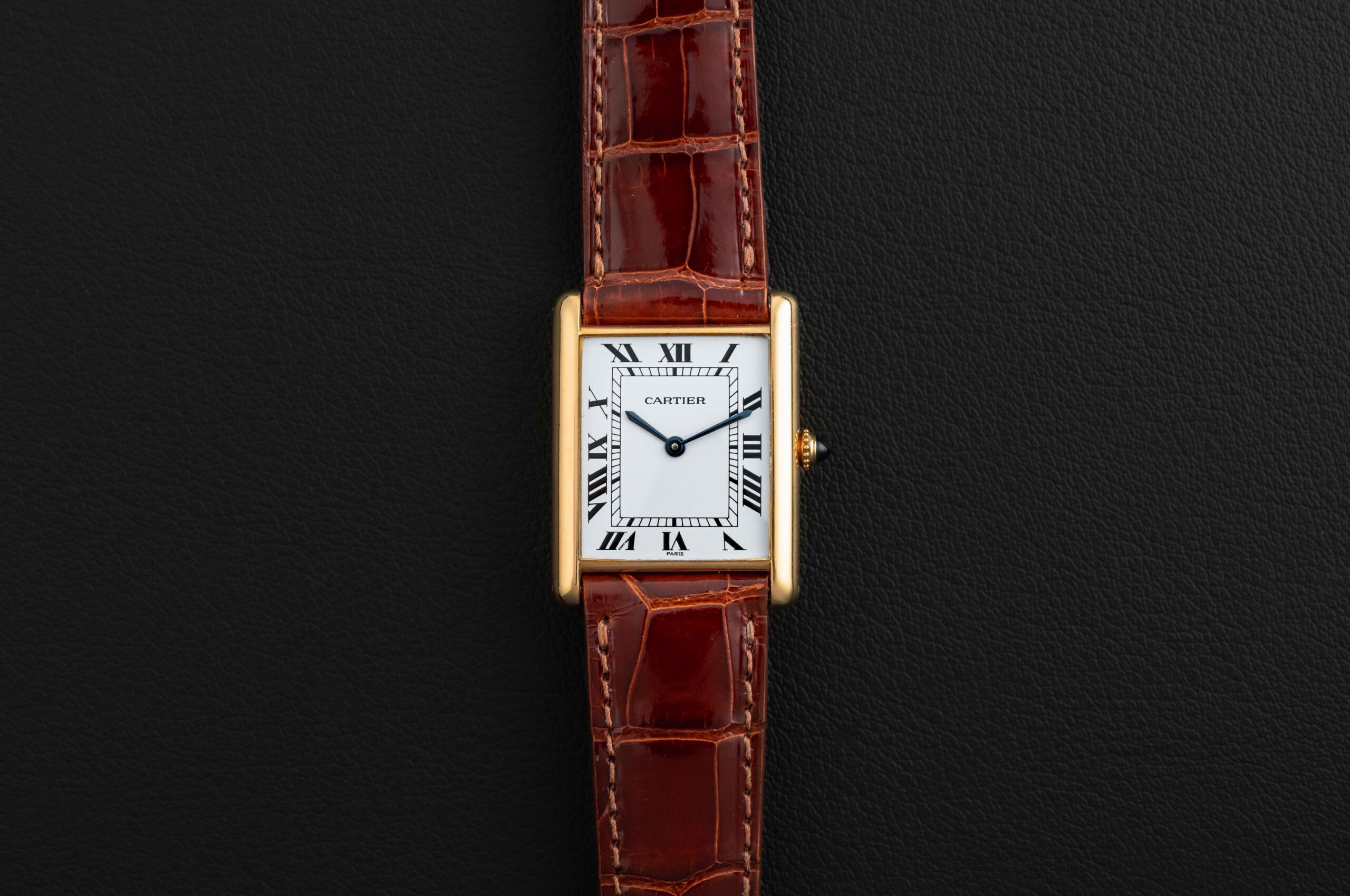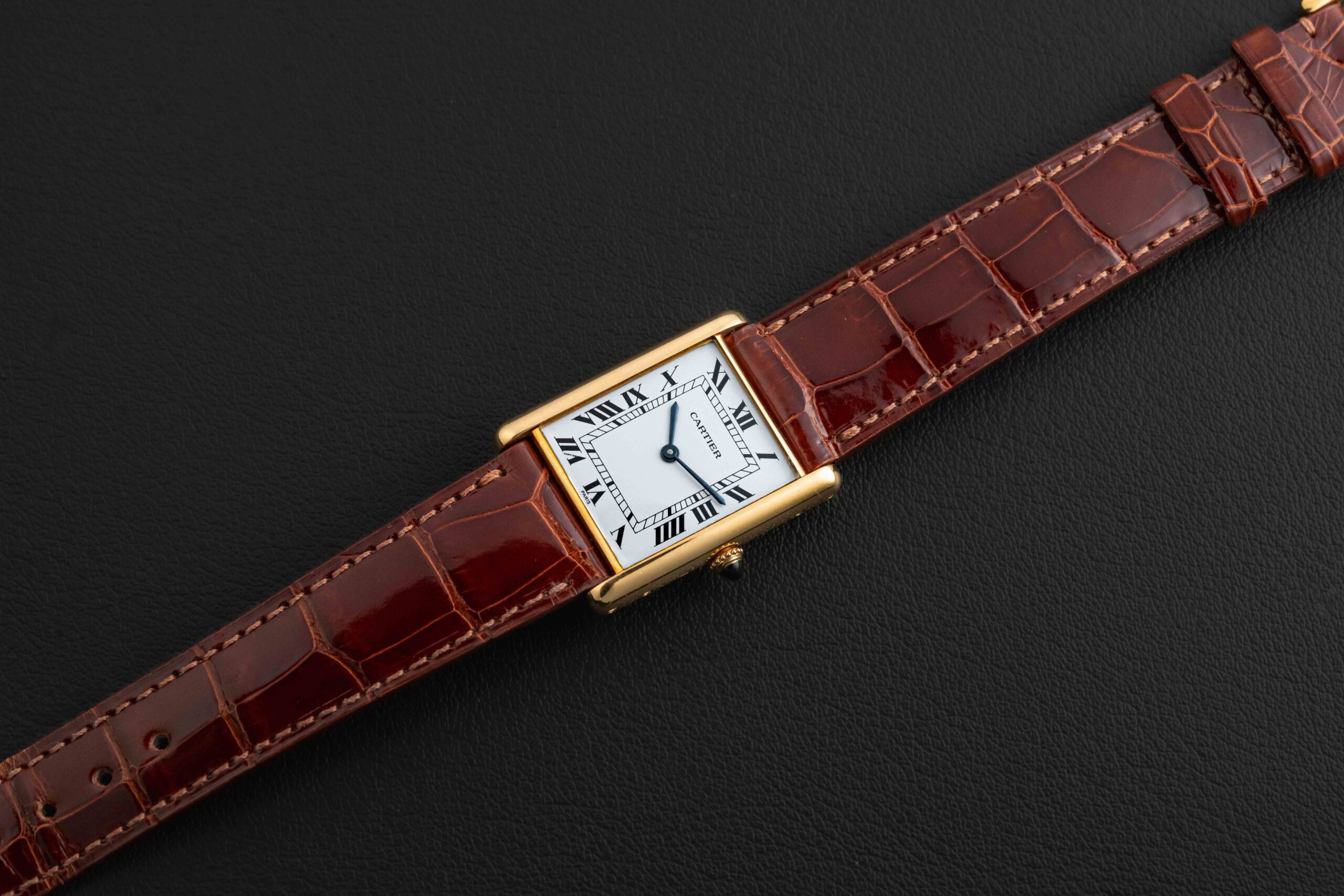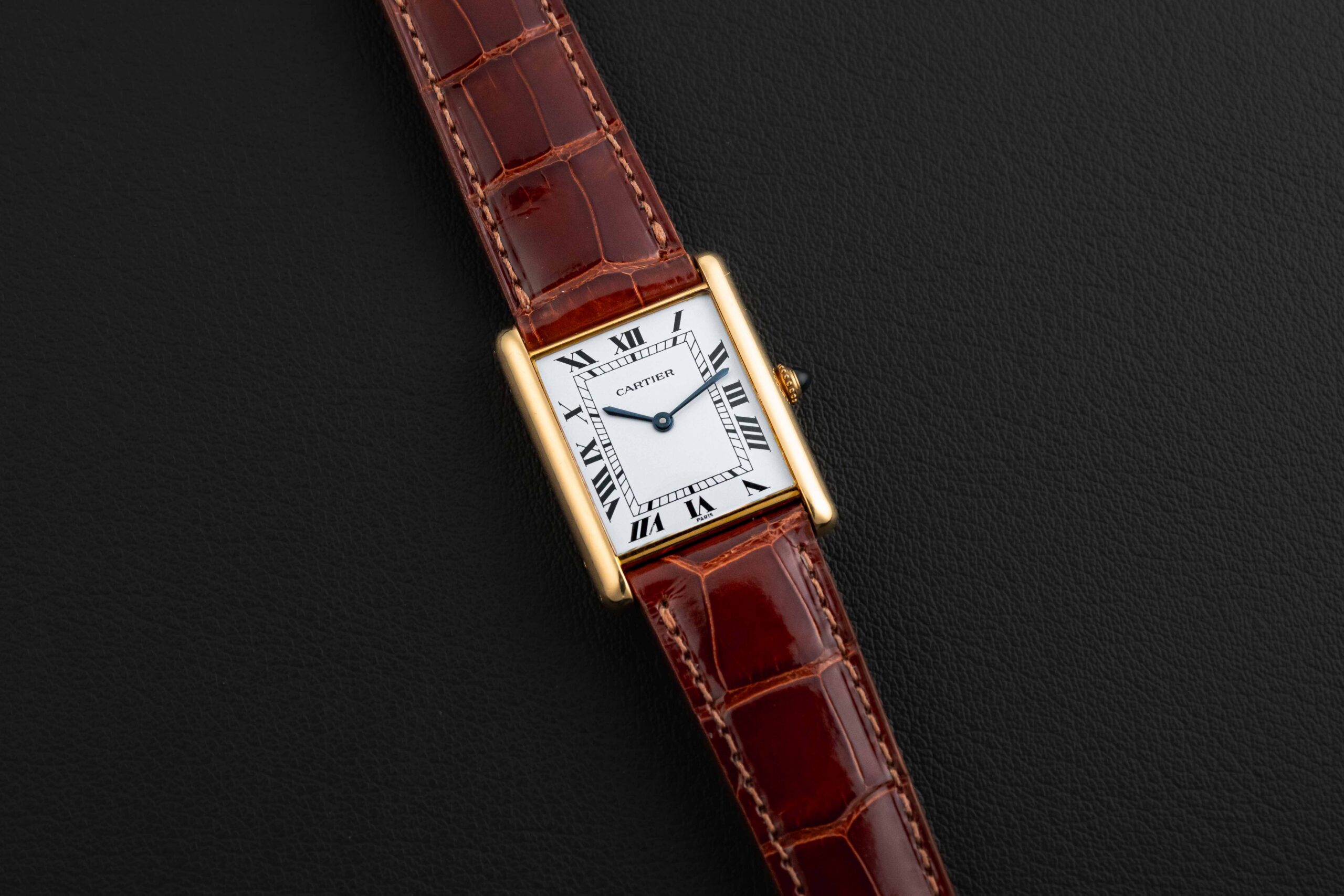 Up for grabs is a Cartier Tank “Jumbo” Automatic, produced between the late 1970s and early 1980s. This Cartier Tank, given the reference 17011 is quite uncommon, and at 25.5mm x 33mm, was quite large for a Tank of this era. The watch itself remains in great vintage condition, with an unpolished case, and near perfect dial (the dial lacquer shows very faint spidering, only visible under a loupe, and not visible to the naked eye). Further, the watch comes with its original matching yellow gold Cartier tang buckle.