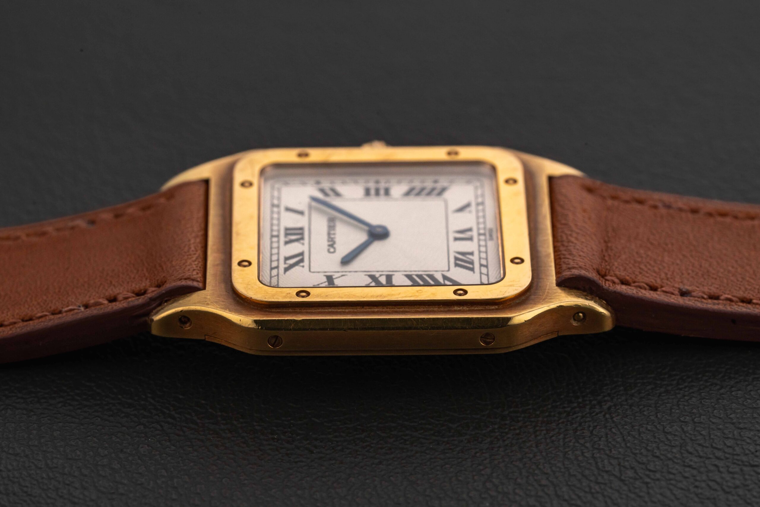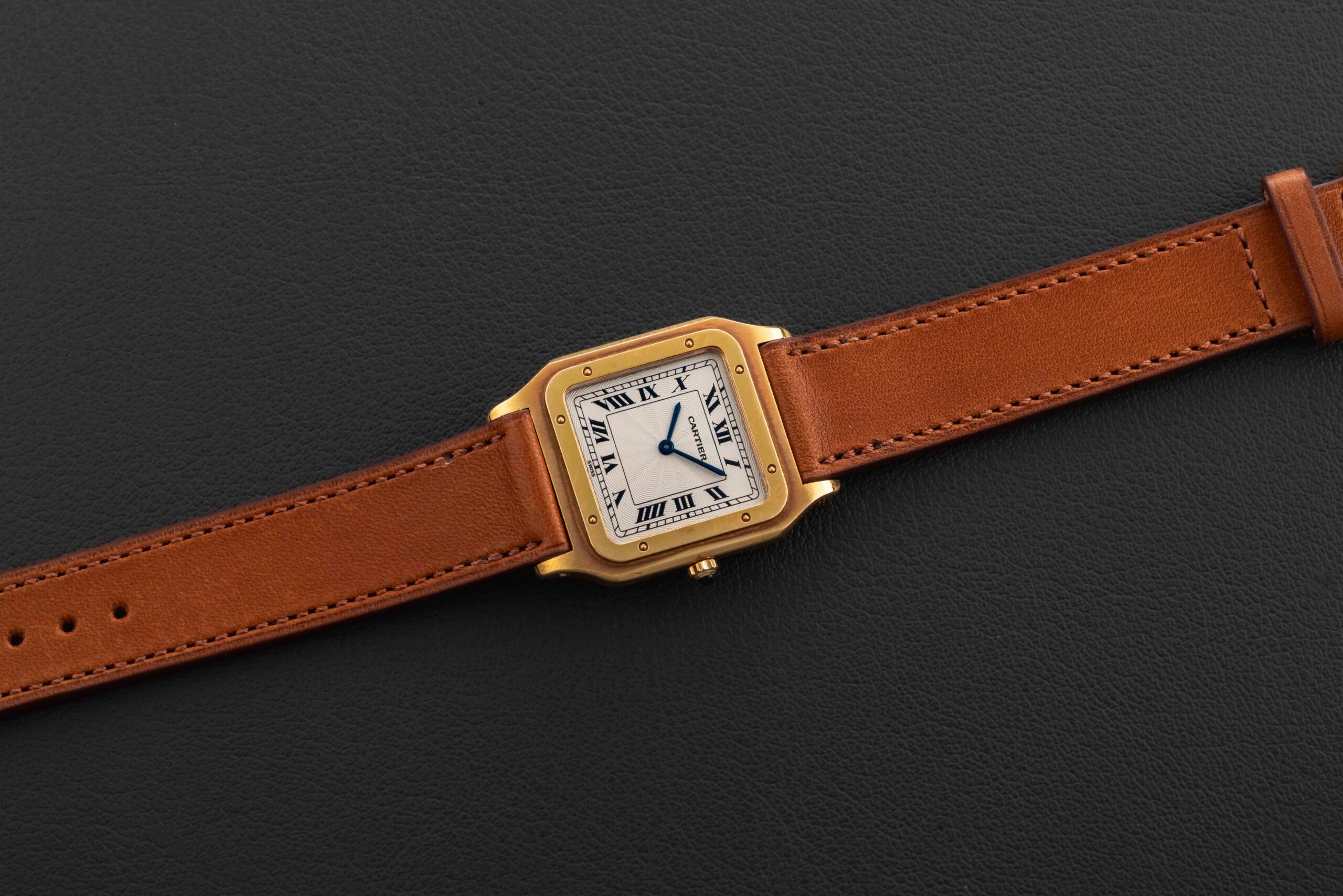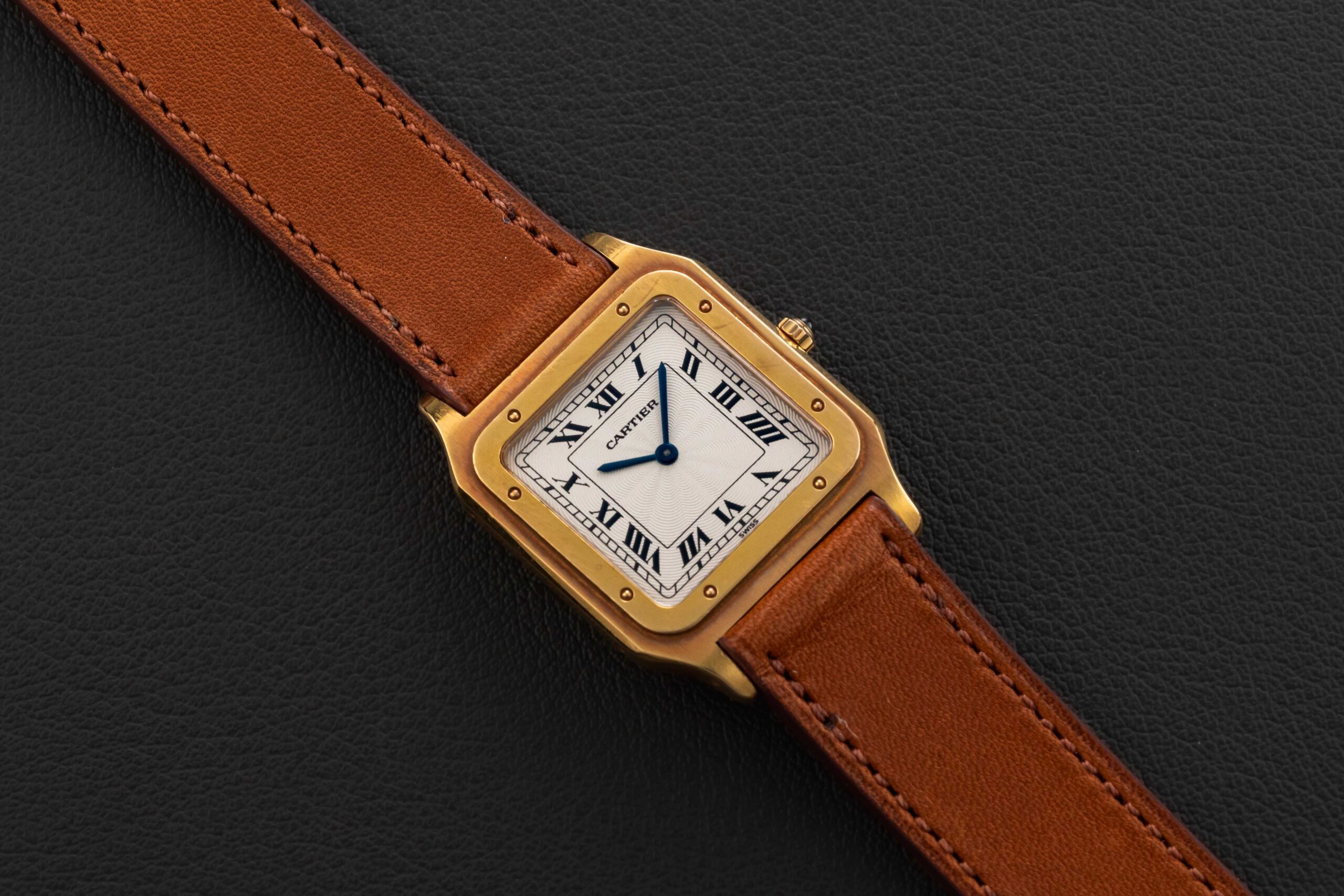 Up for grabs is a Cartier Santos Dumont, circa 1980s, which has exploded in popularity as of late, along with the majority of vintage Cartier models as of late. The Santos Dumont was created in collaboration by Louis Cartier and Alberto Santos-Dumont. Santos-Dumont complained about his inability to easily check the time while flying, and thus they designed a slim, light watch that would be suitable for him to comfortably wear while flying.