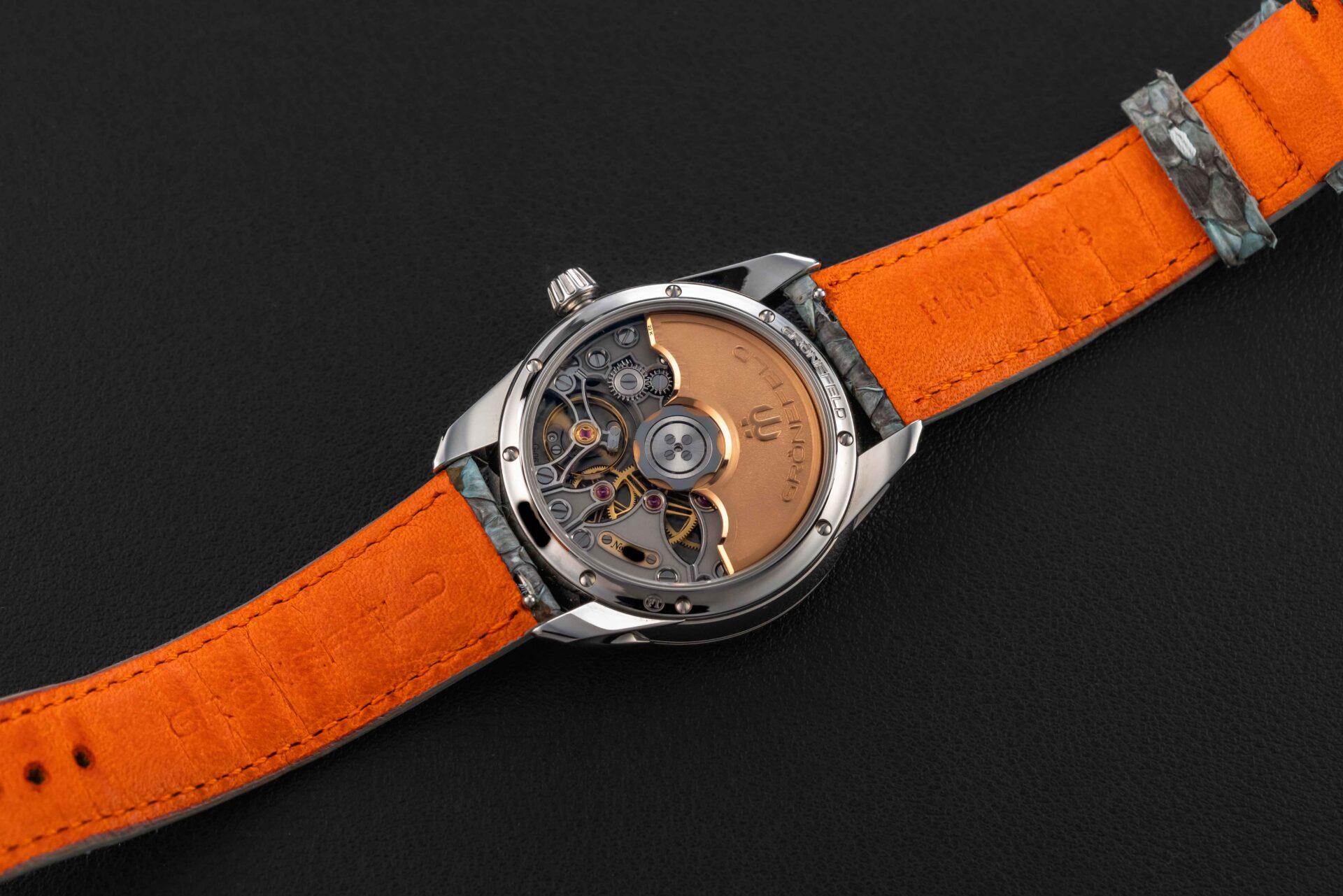 Offered here is a very rare and beautiful watch from Bart and Tim Grönefeld, the Dutch brothers behind independent watchmaking outfitter Grönefeld. This watch features the ever popular Tiffany blue turquoise made of sterling silver, in a lovely and intricate stainless steel case.