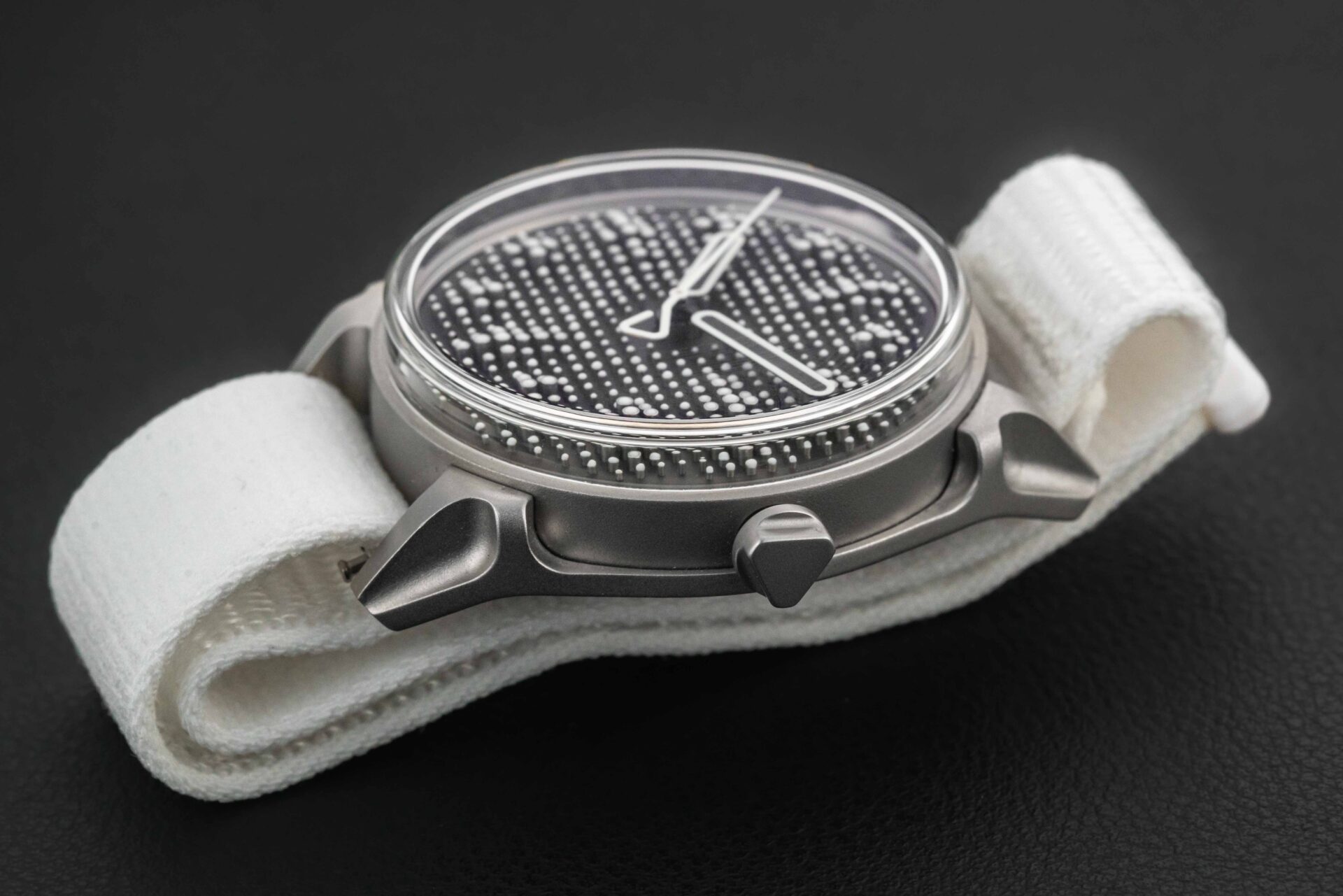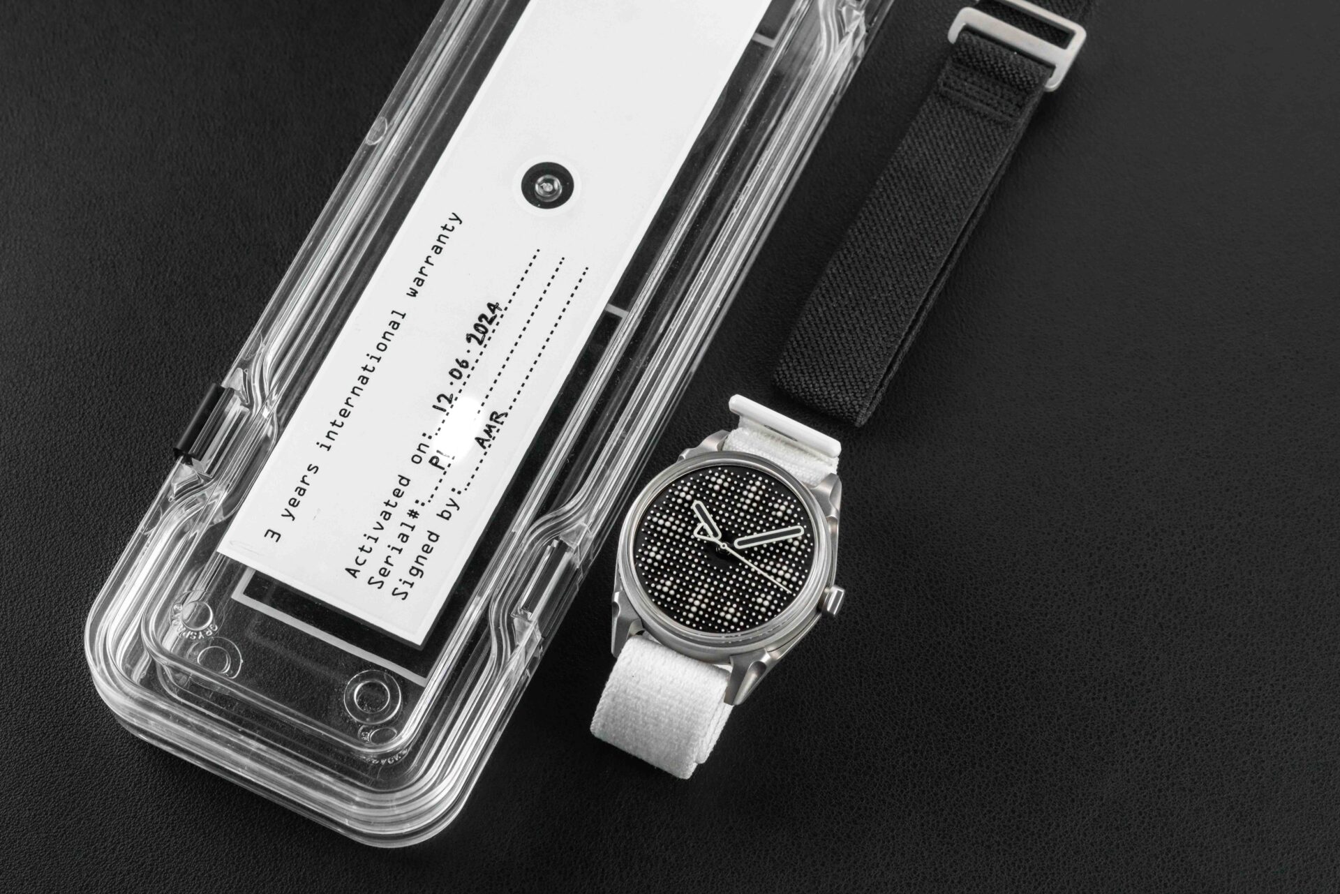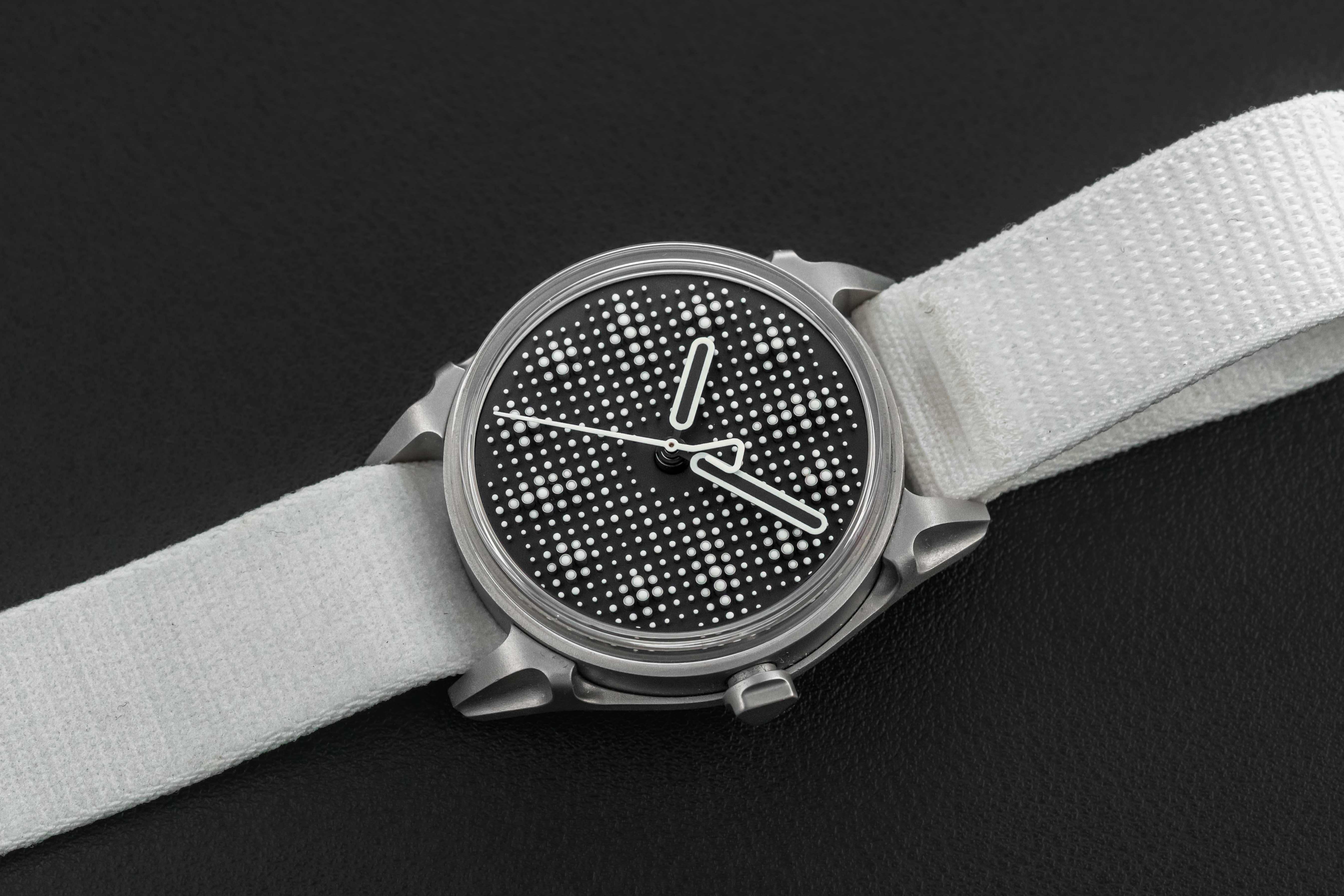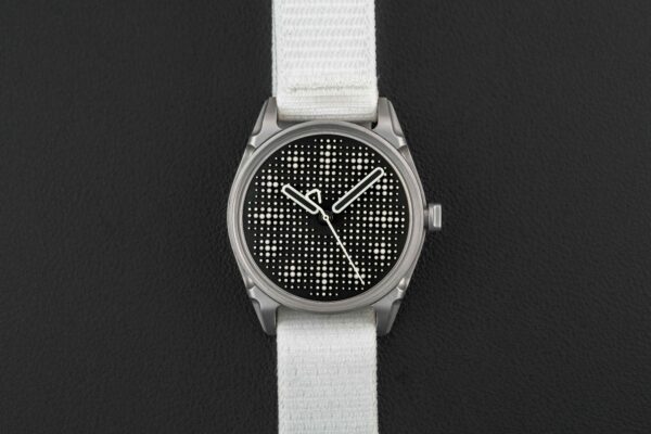 Up for grabs is the first offering of the new independent brand Kollokium dubbed the “Projekt 1”. Starting in 2020, Kollokium was founded by three industry veterans who state that Kollokium is not even a brand at all, but a platform to explorer new possibilities in watchmaking from alternative perspectives. Featuring a two part die-cast steel case, a unique three-dimensional lumed dial, and domed crystal, the design is outside of the box to say the least. This particular Variant “B” comes as a complete full set and remains in mint condition from 2024.