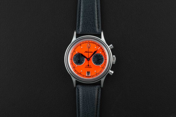 Up for grabs is a watch from the Japanese independent watchmaker Hajime Asaoka’s offshoot brand, Kurono. Kurono is best known for its vintage-inspired designs, but with outsourced movements, mostly provided by Miyota and Seiko. With its latest creation, the Vermilion Chronograph, which is their boutique/salon edition, Kurono adds a stunning orange/red dial to its chronograph lineup. The watch is sold in like new condition, and complete with its original box and all accompanying paperwork/warranty card.