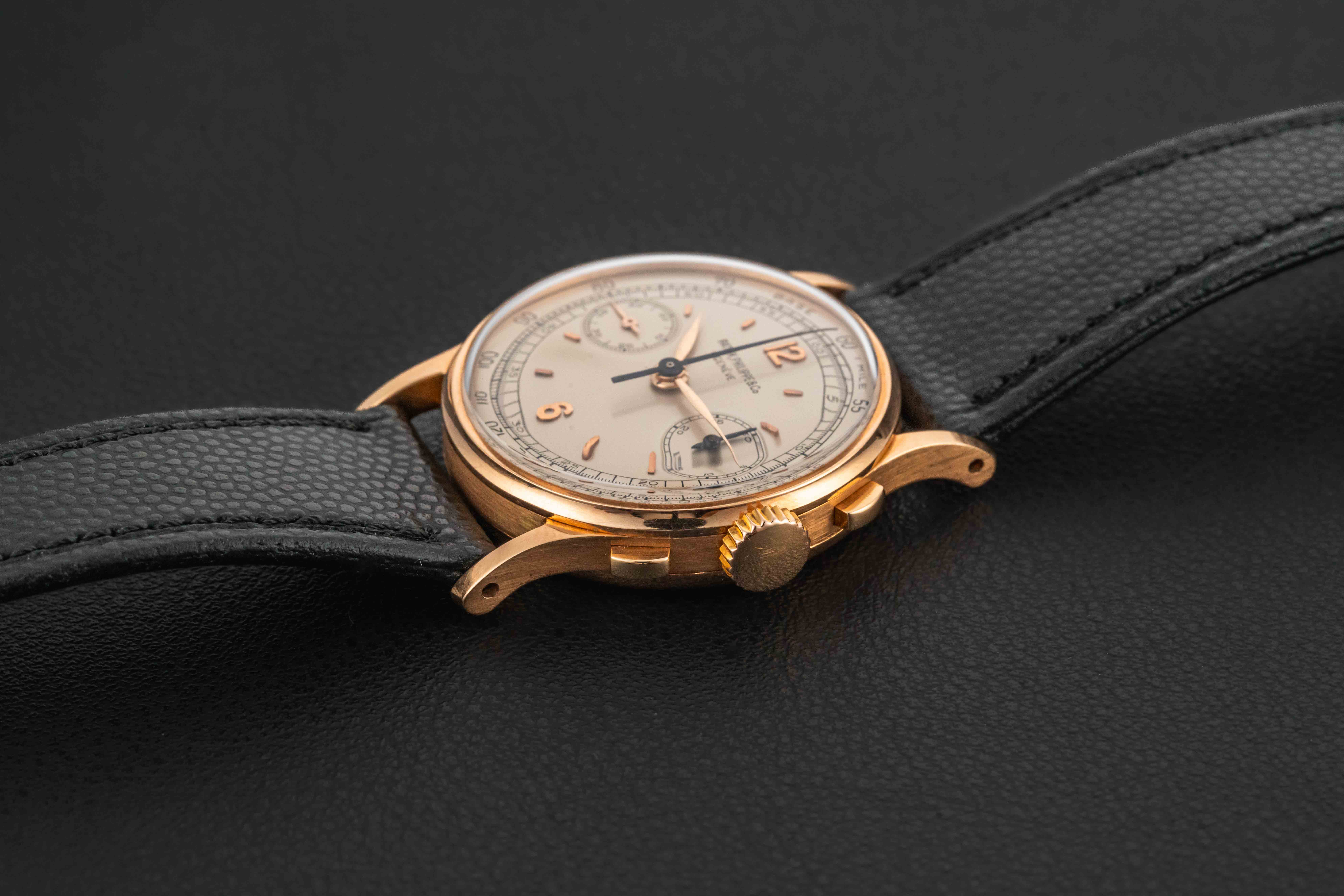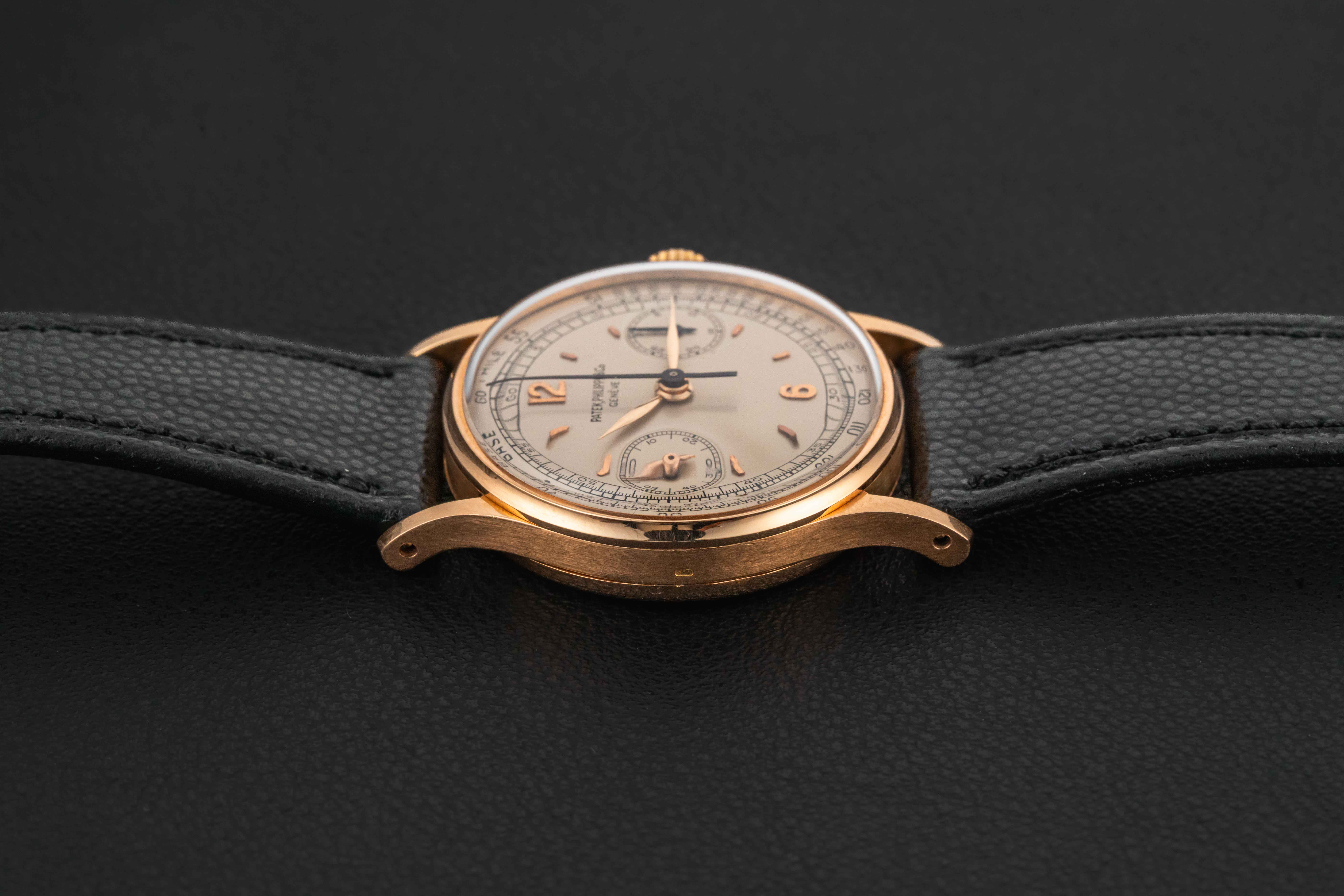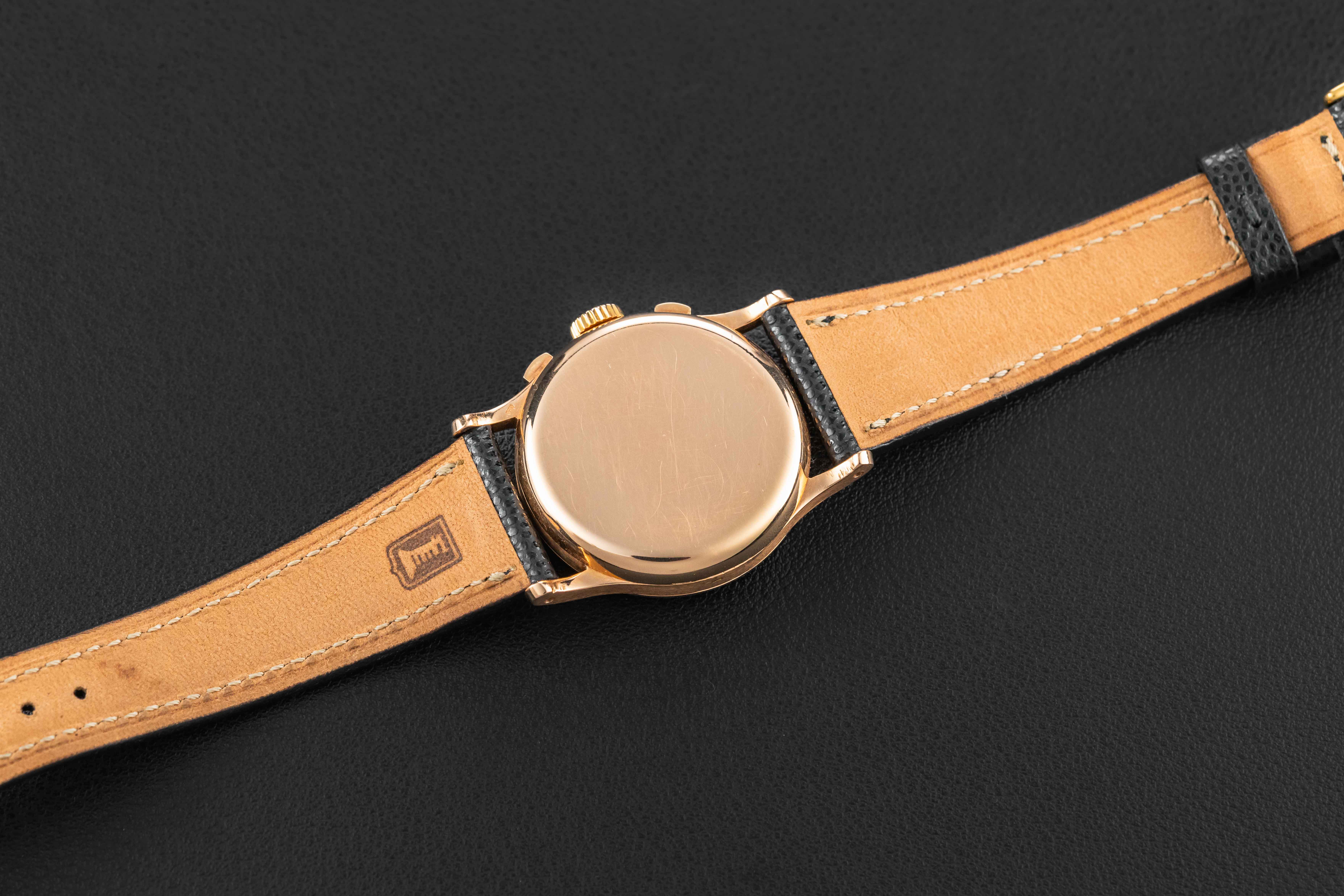 Up for grabs is an exceptional watch – the enigmatic Patek Philippe 130 chronograph, circa 1943, housed in 18kt rose gold. According to the Extract of the Archives, this watch was produced in 1943, and subsequently delivered in 1945.