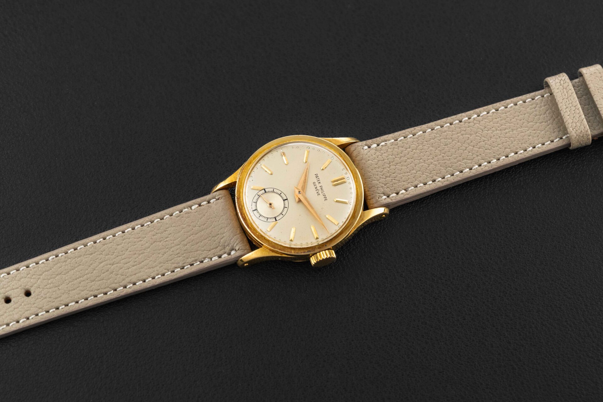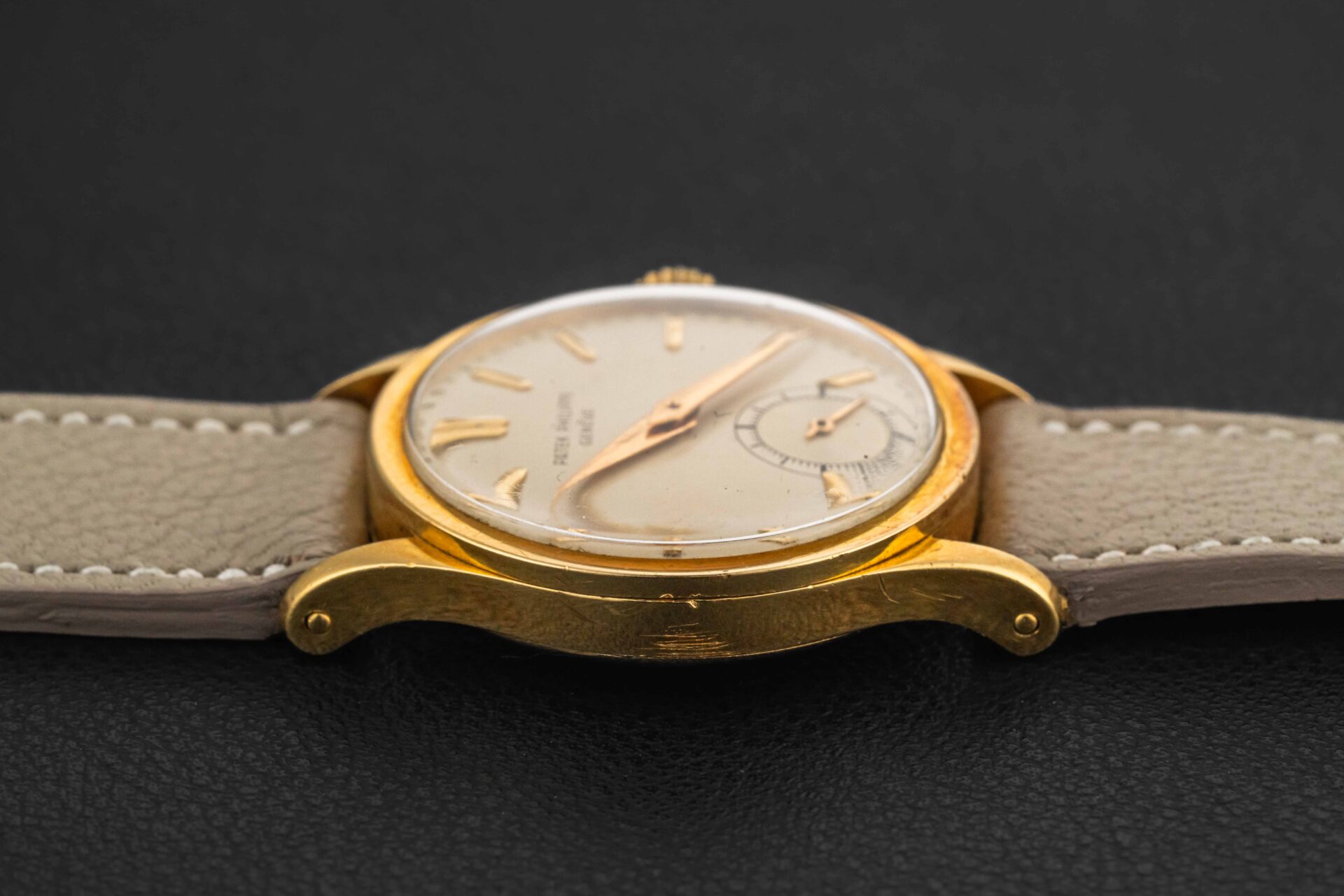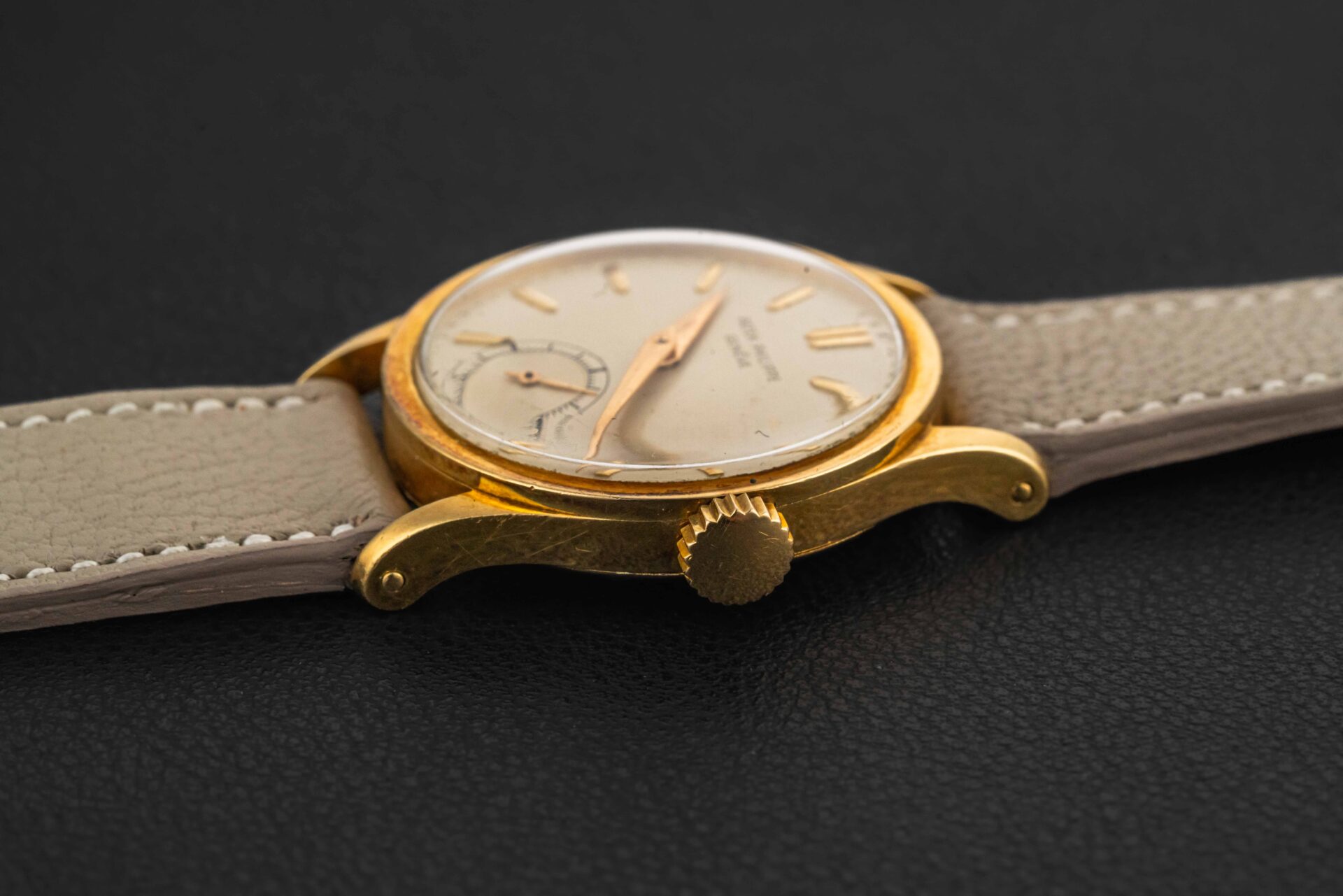 This Patek Philippe Calatrava is in great vintage condition. The case does not show any signs of polishing, maintaining its original lug definition, and visible hallmarks throughouts. The dial is very well-preserved, with some light patina/wear consistent with the aging of this model of Calatrava, and remains completely unrestored/untouched.