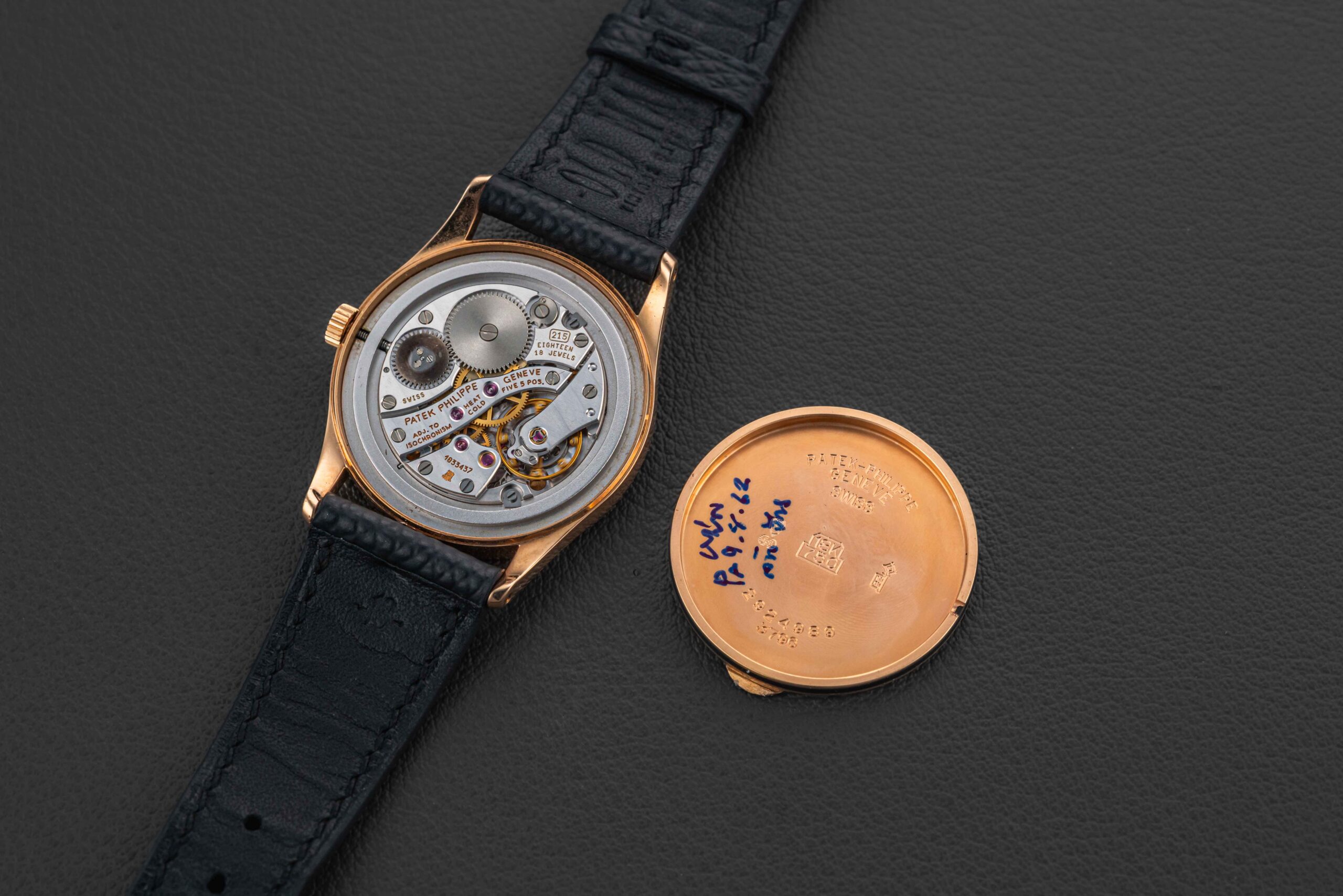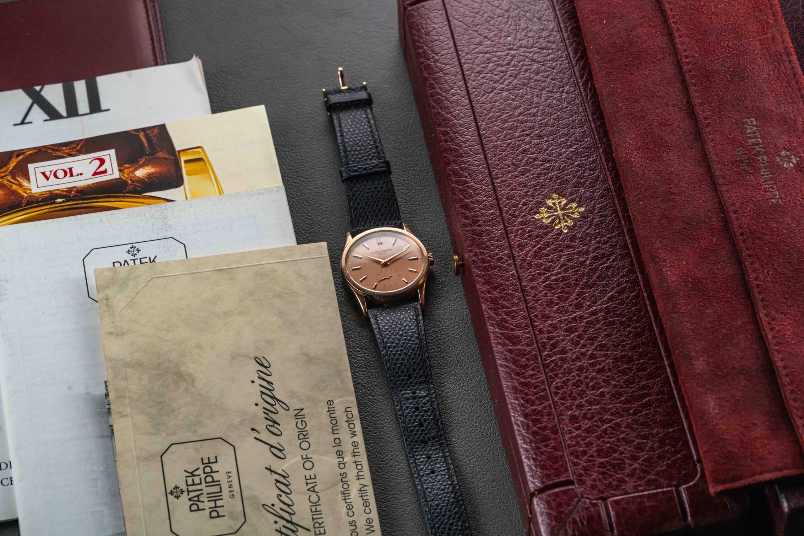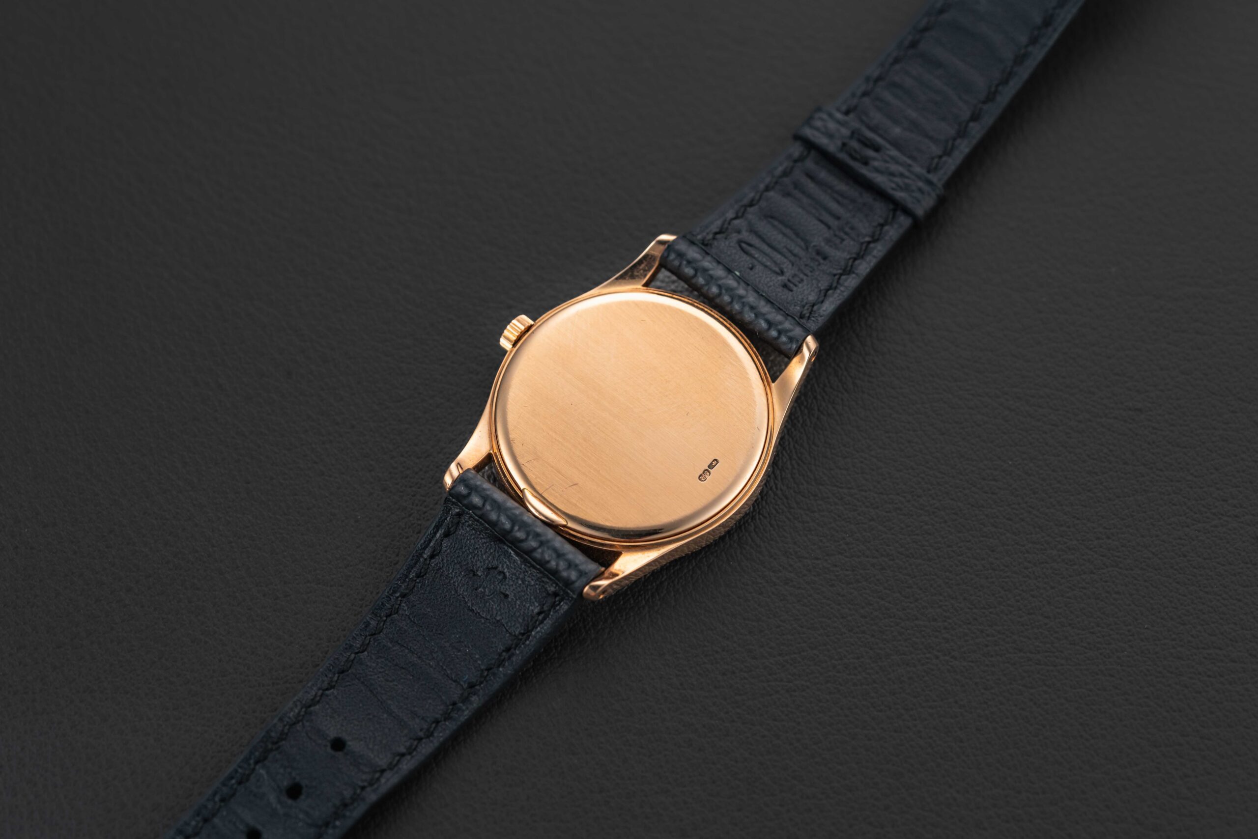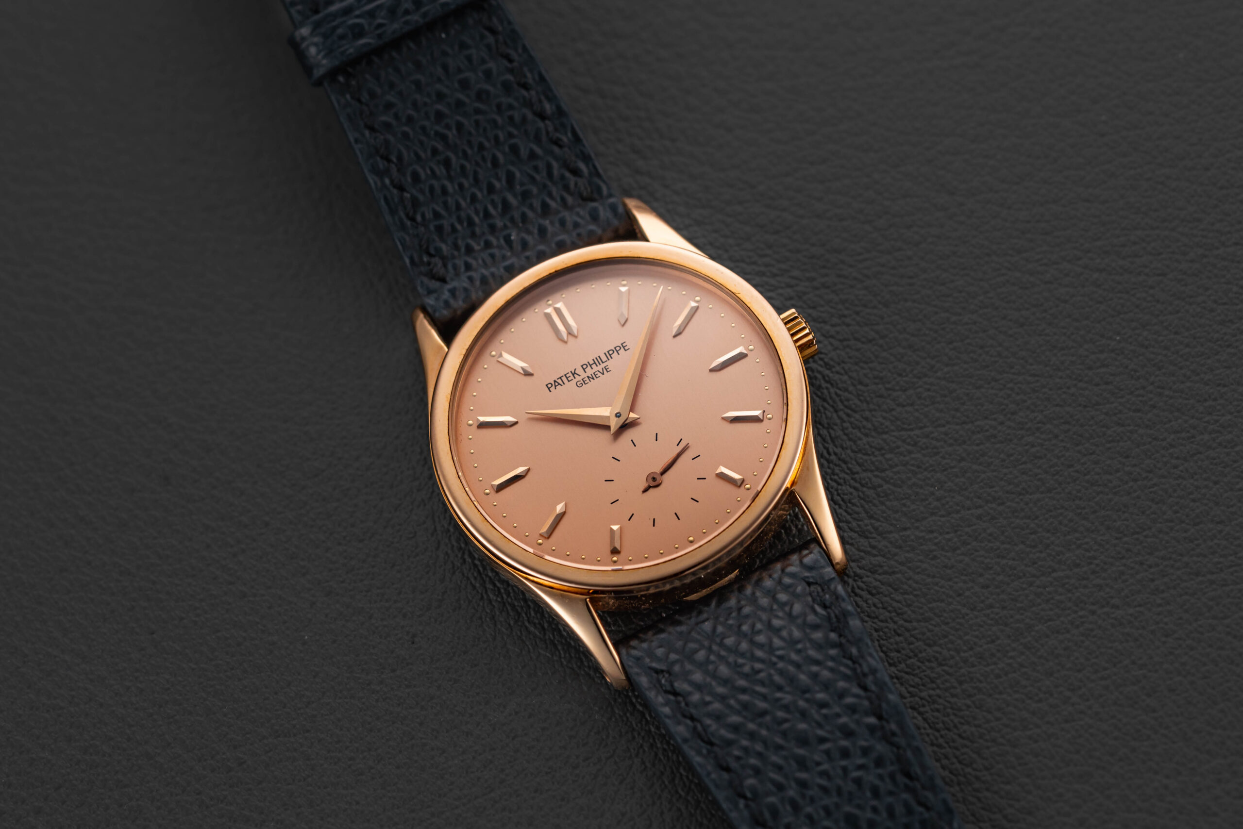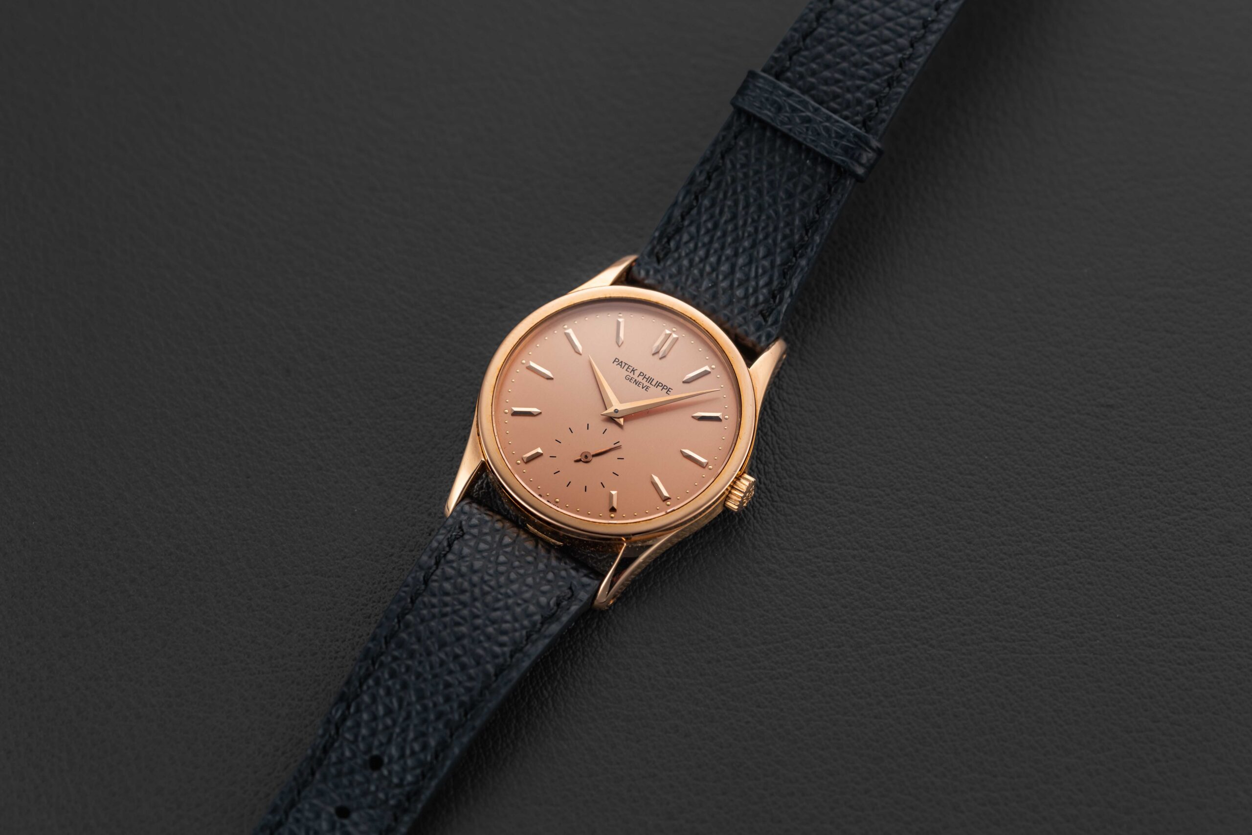 Offered here is Patek’s successor to the popular Calatrava reference 96 – the follow-up 3796. The reference 3796 was produced in three metals (yellow, rose, and platinum), and was released in 1982. The present example was sold by Gubelin in 1983, was manufactured in rose gold, with a matching rose gold dial (“pink on pink”); Patek allegedly only produced a handful of these matching pink-on-pink examples. Further, this particular example comes with its original Patek Philippe box, Certificate of Origin, accompanying paperwork, and original matching rose gold Patek tang buckle. This Patek Philippe Calatrava is in great vintage condition, with a seemingly unpolished case (showing normal wear from use), and a perfect dial with no flaws.