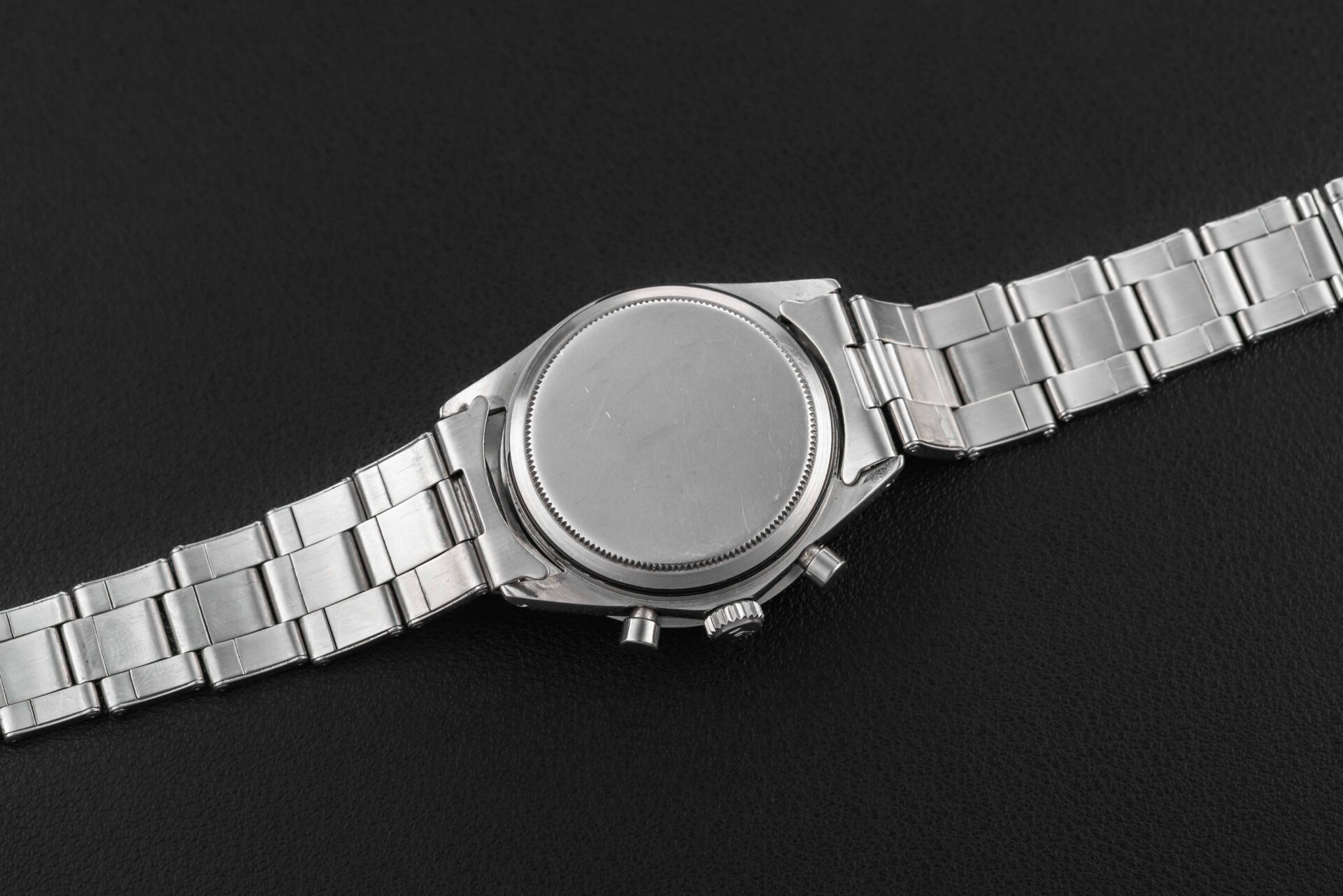 The condition of this “Paul Newman” Daytona is great. The case has been previously polished, but lightly, with thick and even lugs. The dial is in immaculate condition, with no wear or scratches, showing very light aging around the outer track, visible under a loupe. The original tritium lume is still present on both dial and hands, with extremely beautiful and puffy, yellow plots, and no visible loss whatsoever.