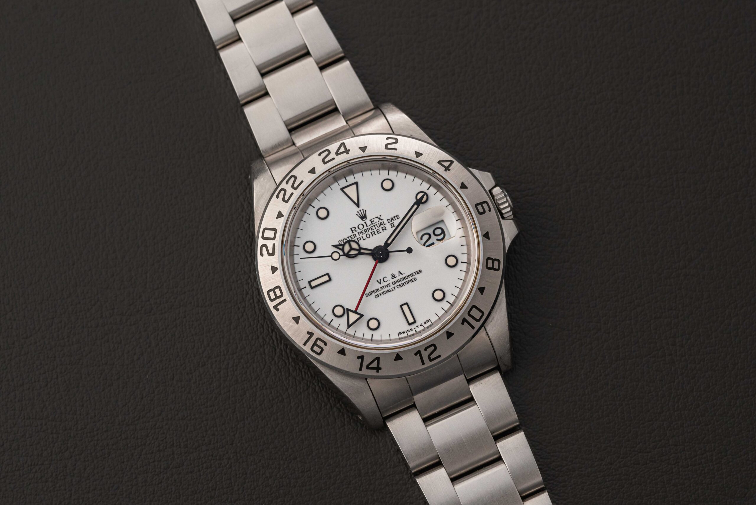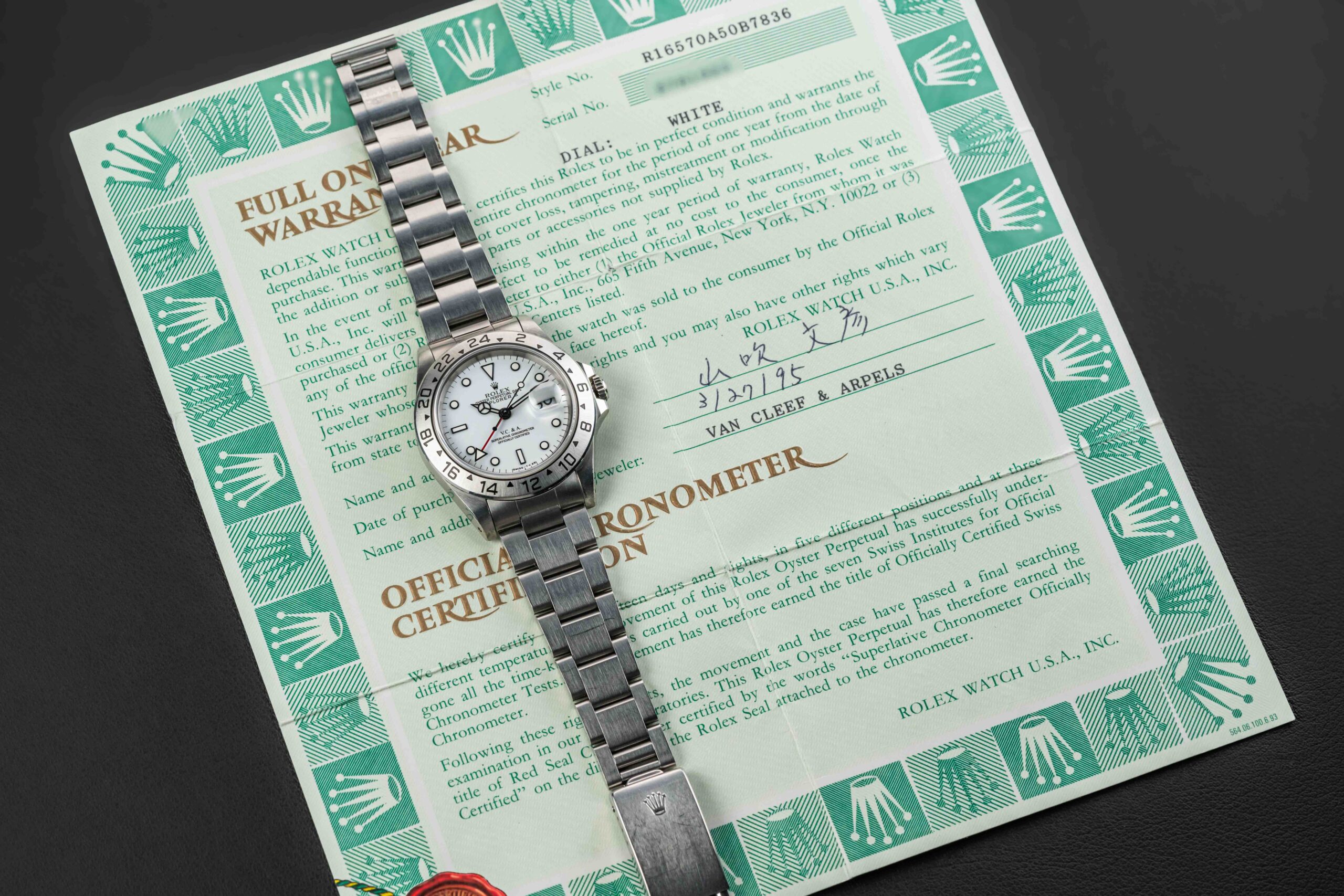 When it comes to vintage Rolex, there are a lot of “rare” watches out there. However, the watch offered here today is on another planet entirely – in fact, it is the only Explorer possibly left in existence of its kind. Offered here is a Rolex Explorer II, reference 16570, produced circa 1993. However, what sets this Explorer apart is the fact that it was retailed…no, not by Tiffany & Co…but, by the illustrious jeweler, Van Cleef & Arpels! To top it off, the watch comes with its original Rolex box, Warranty Certificate (showing the date of sale in 1995 by Van Cleef), and matching VCA-stamped bracelet.