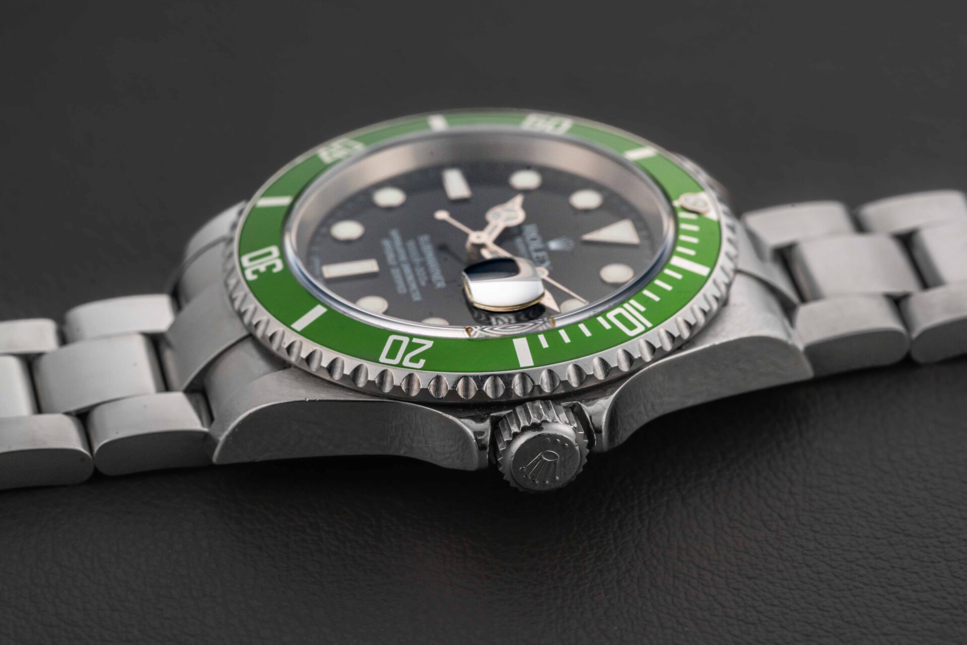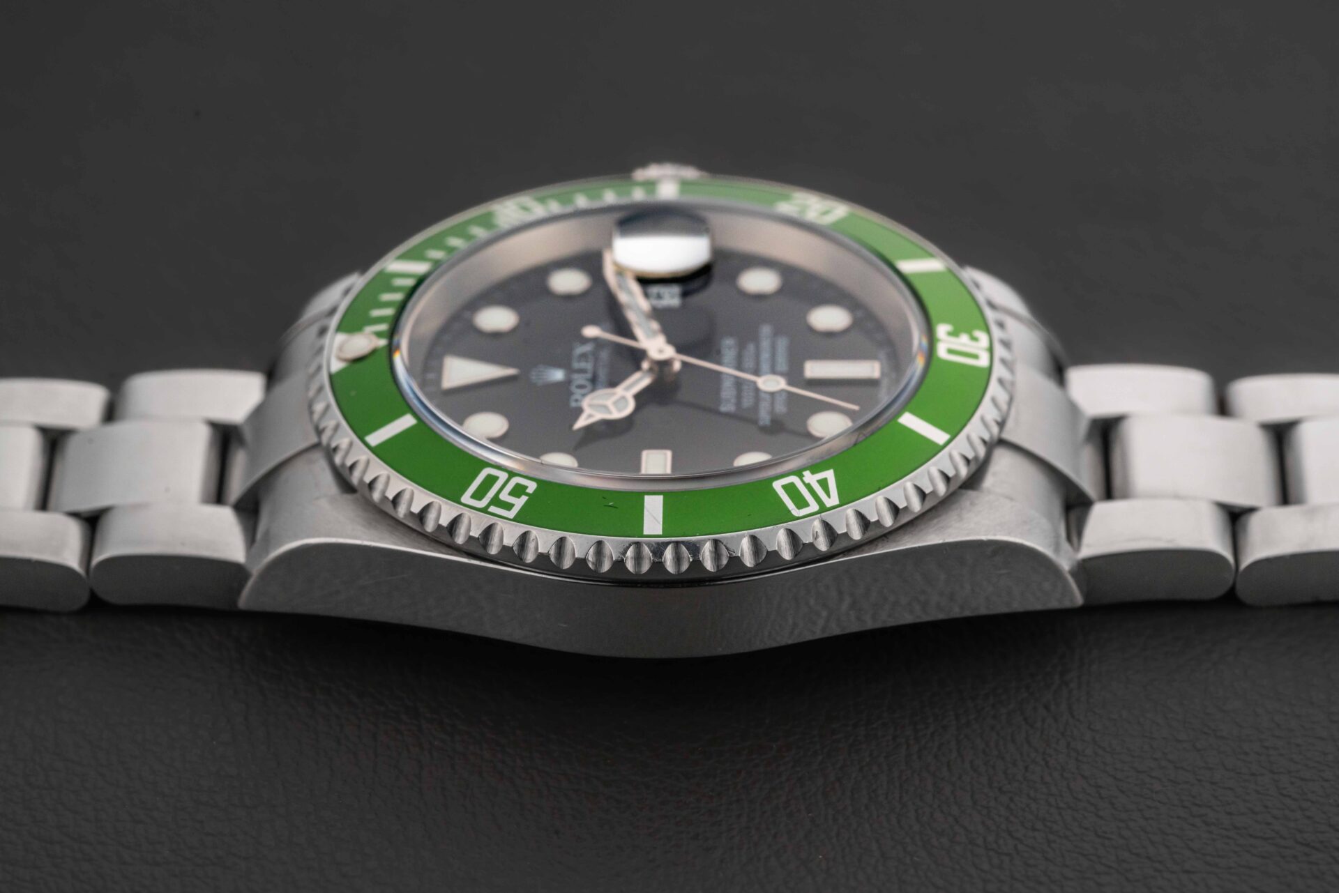 Up for grabs is an early production Rolex Submariner, Reference 16610LV, nicknamed the “Kermit”, circa 2006. This Rolex Submariner “Kermit” is in excellent pre-owned condition – the case remains sharp and unpolished, with light scuffs to the side of the case and bracelet from use (can be detailed at buyer’s request). The bezel insert and crystal are clean, with a few light scuffs to the bezel insert. The watch comes with its original Rolex box and Warranty paper (as pictured). The original Rolex Swiss bracelet has 11 full links and virtually no stretch.