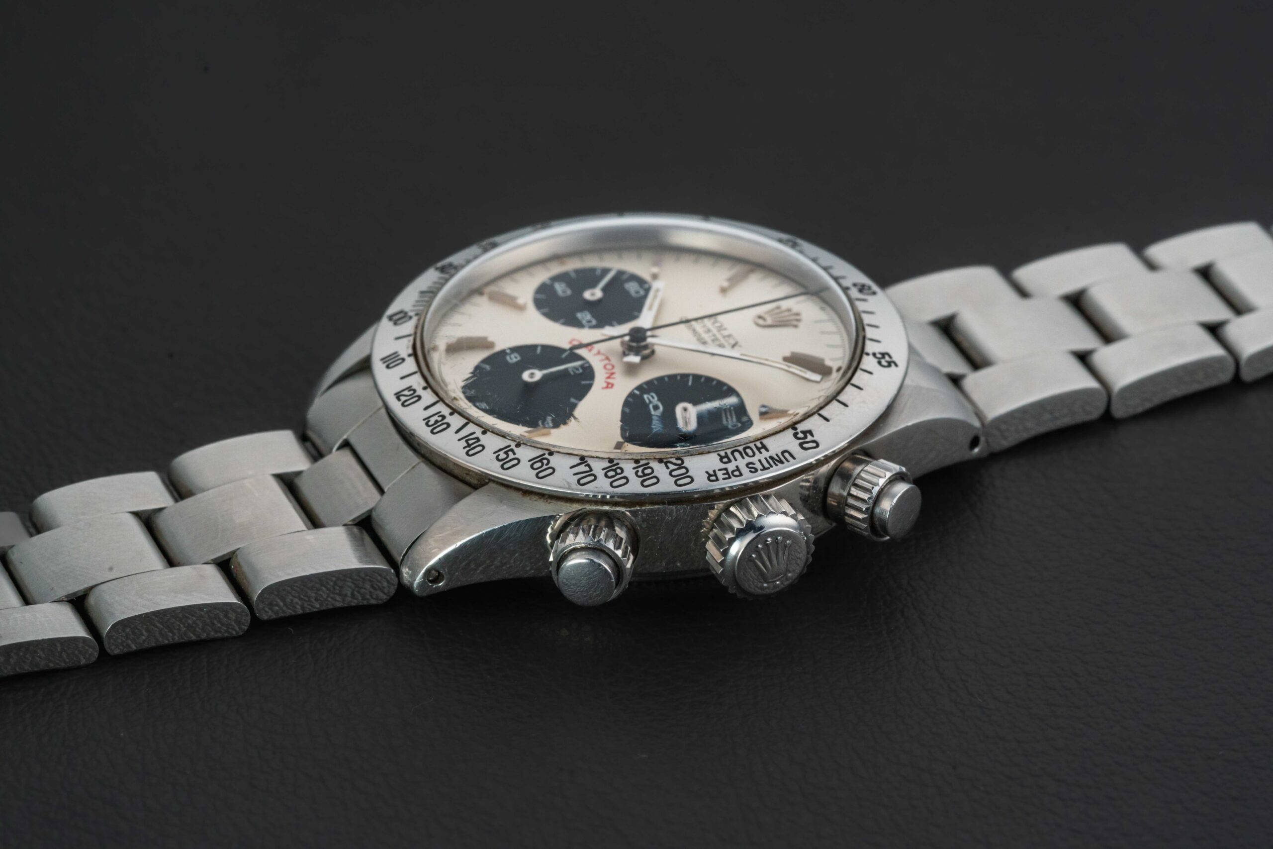 The condition of this Daytona is excellent. The case appears unpolished, with strong, thick and even lugs. The dial is in beautiful condition, with no flaws. The original tritium lume is still present on both dial and hands, with extremely beautiful and puffy plots, with no loss, and aged to a nice yellow color. The watch comes with a 78350/19 oyster bracelet, with 557B endlinks. The bracelet has virtually no stretch, and has 12 full links.