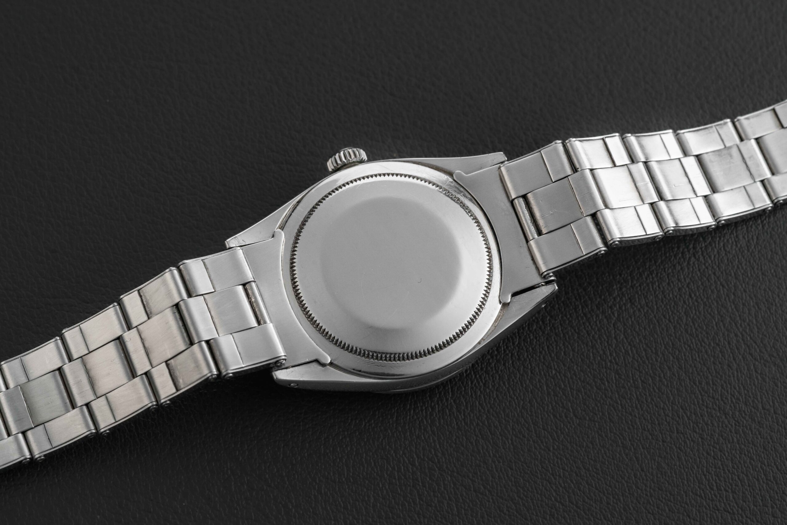Up for grabs is a lovely and rare example of a gilt dial Rolex Explorer, Ref. 1016. This example dates to 1962, and features a “chapter ring” dial, used only in the early 1960s (from approximately 1960-1964). However, this watch was also produced during an era when Rolex was experimenting with different lume compounds from radium to tritium. As such, Rolex would often designate these dials as having a lower compound of radium (or none at all), via an indication on the dial in either the form of an “underline” printed on the dial, or an “exclamation”, which was a small dot of lume applied right below the 6 o’clock marker, giving the appearance of an exclamation mark. On this watch, we see the “exclamation” above 6, signifying a lower strength of radium used on the dial.
