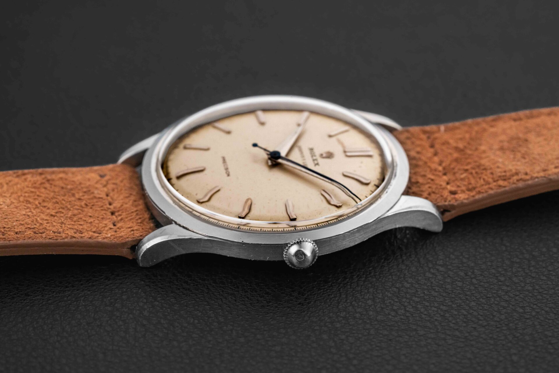 Offered for sale is one the rarest Rolex watch we have ever presented for sale – a Rolex Precision, circa 1950s. This is no ordinary Rolex Precision though; bearing the Reference 8029, this watch was fitted in an oversized, 38mm steel case. This particular Reference 8029 features an incredibly rare co-signature from the famous Venezuelan retailer, Serpico Y Laino. In our research, only one other Serpico 8029 has hit the market – in Antiquorum in 2021, without the Serpico signature on the dial.
