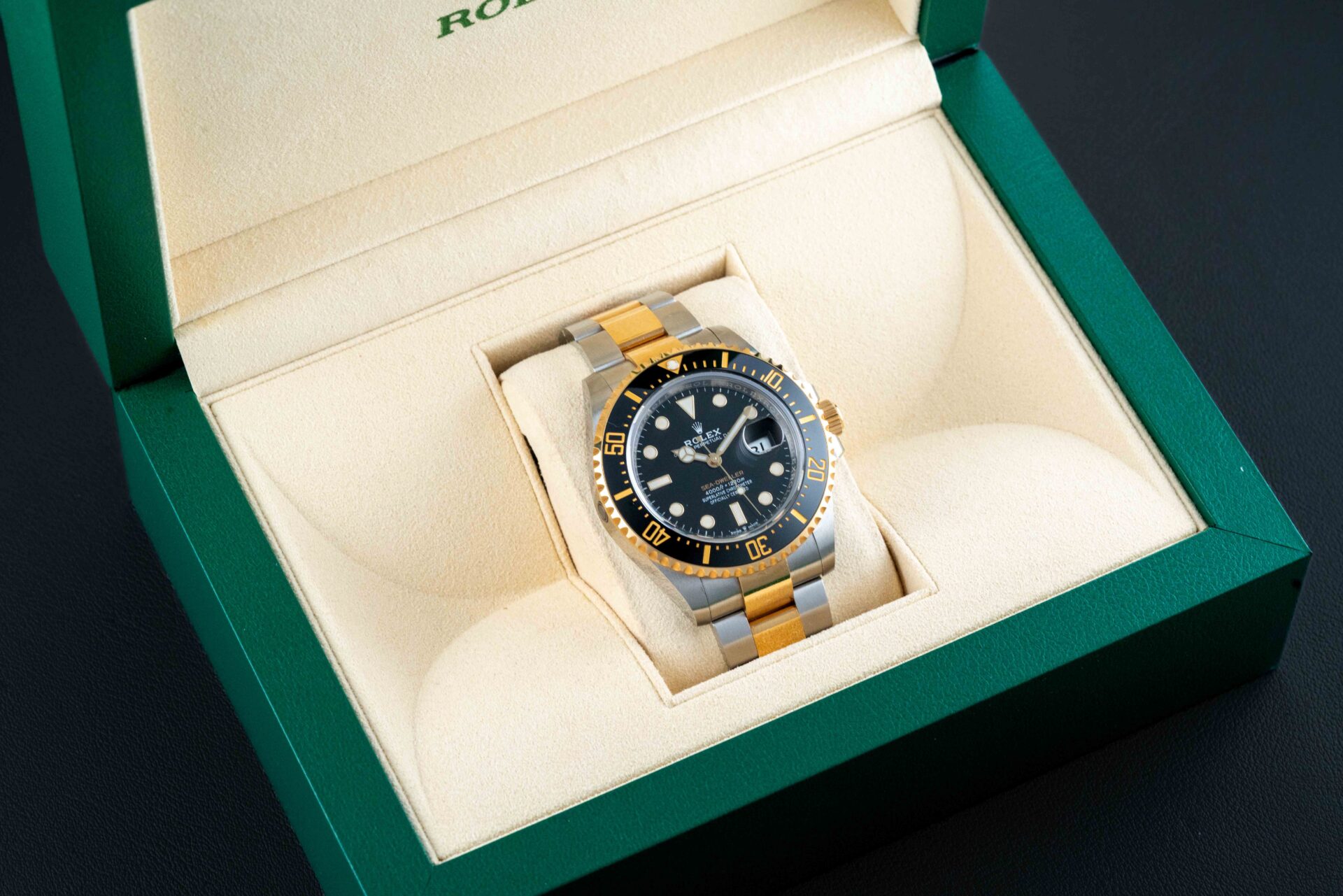 Up for grabs is a pre-owned Rolex Sea-Dweller, in two-tone steel and yellow gold, reference 126603, originally sold in October of 2019. The watch comes in good pre-owned condition and shows minor signs of wear, with no significant scratches or dents. This watch complete with its original Rolex box and “old style” warranty card.