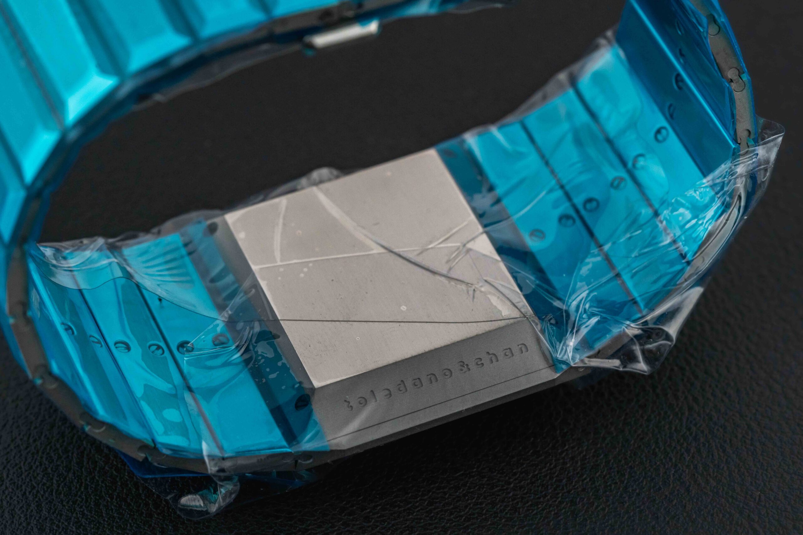 Up for grabs is the highly anticipated and beloved second release from independent duo, Toledano & Chan. The mastermind behind this brand, Mr. Phillip Toledano, is a highly respected artist in the digital space (photography), and dreamed of designing a “brutalist” watch, inspired by his favorite models of the 1970s, in addition to some of his favorite architecture from New York City. On a chance encounter, Phillip met his partner, Alfred Chan, and their creative juices began flowing immediately. After several years of hard work, tenacity, and true grit, the B1 was born, featuring a titanium case with integrated bracelet, and lapis lazuli stone dial. The B 1.2 is the second iteration featuring a new angular crystal, and a stunning Tahitian mother of pearl dial in a stainless steel case. The current watch offered here brand new unworn, complete with its original matching box and papers.