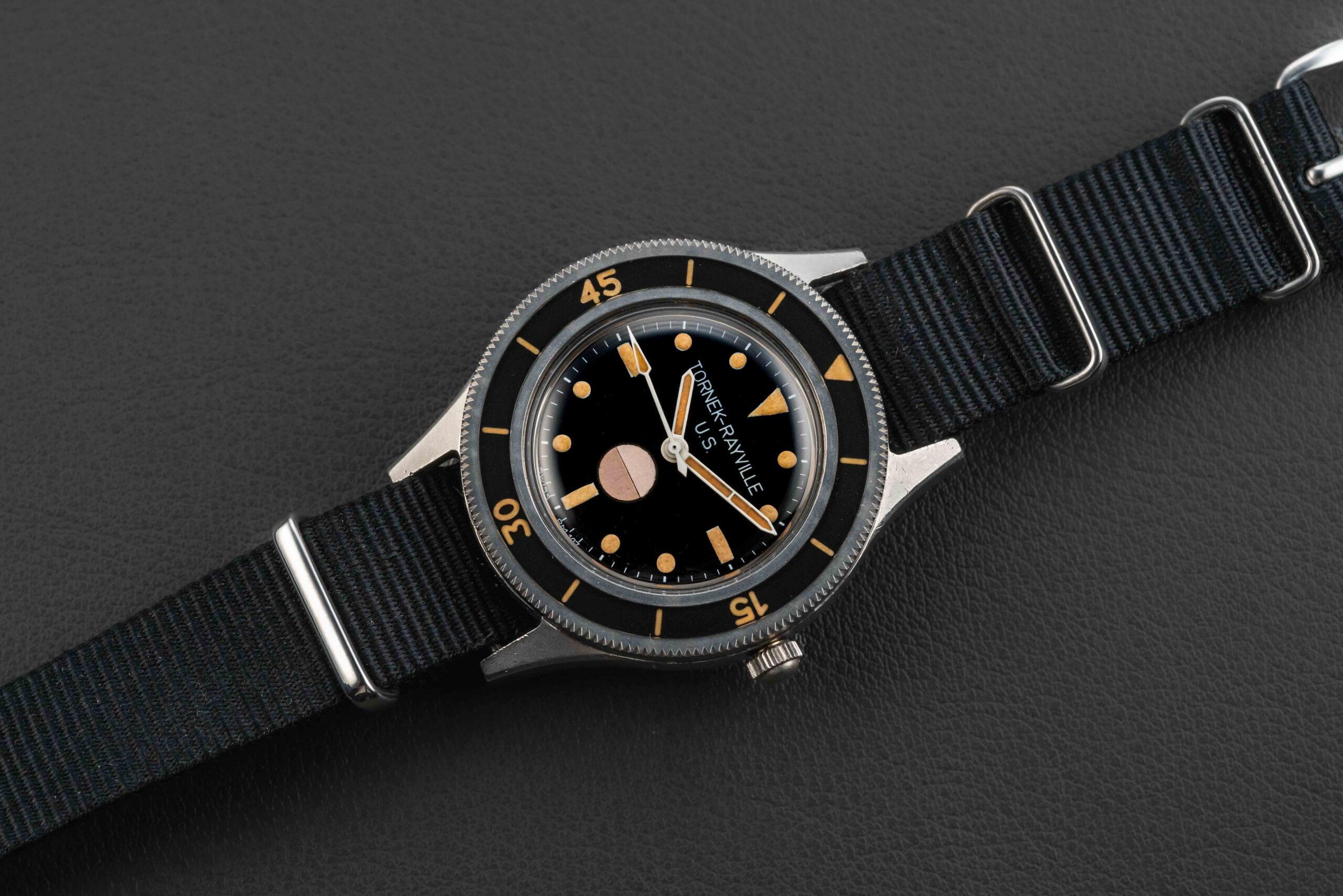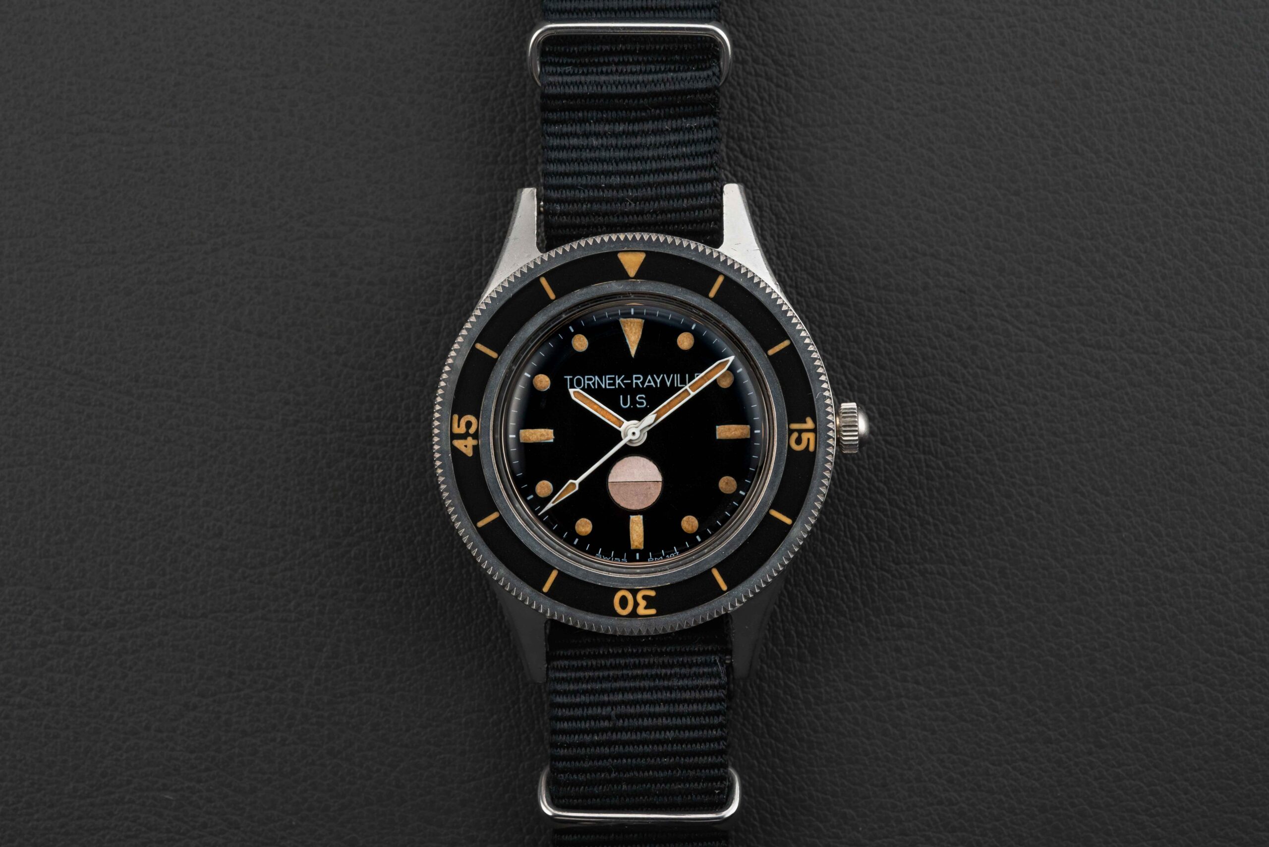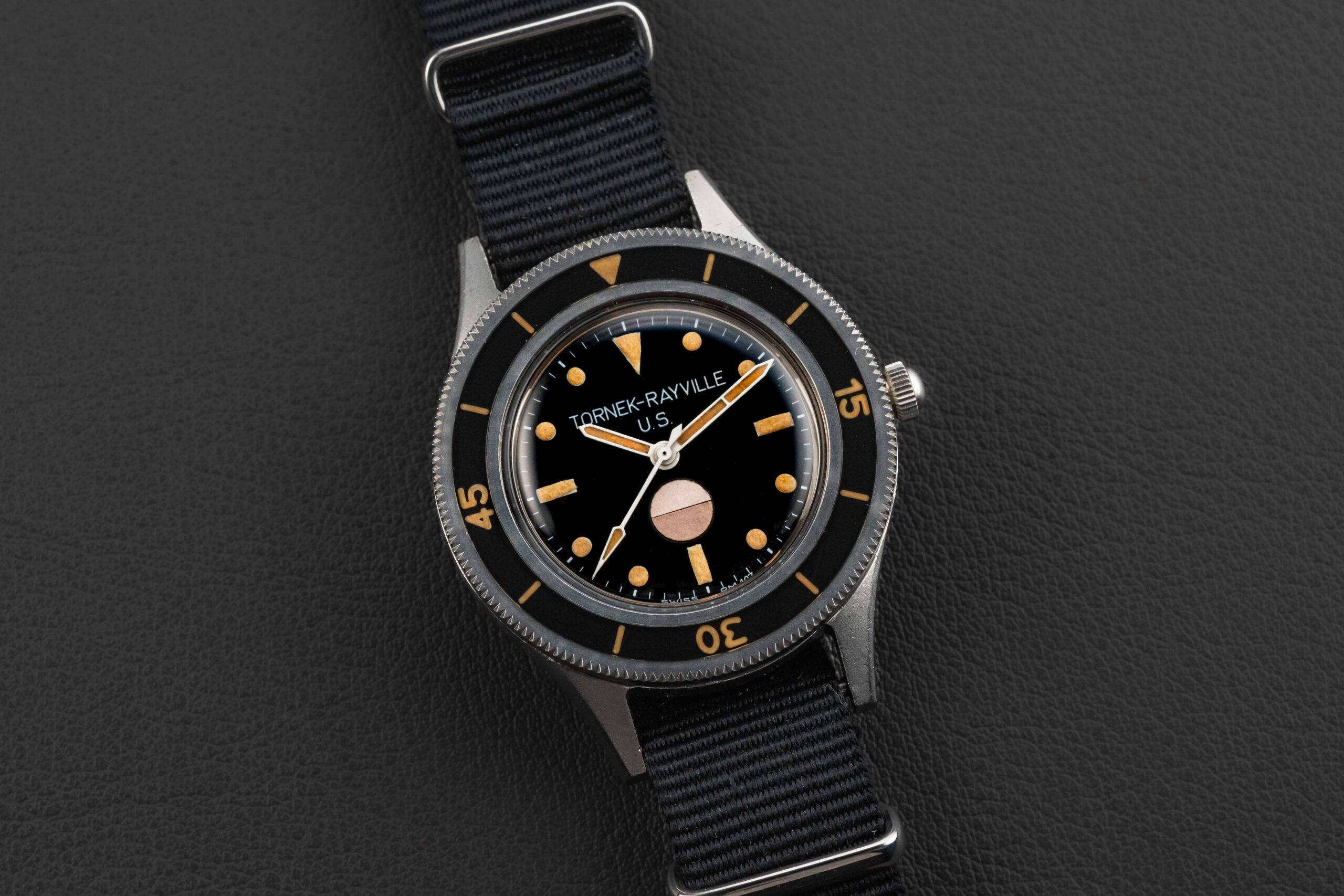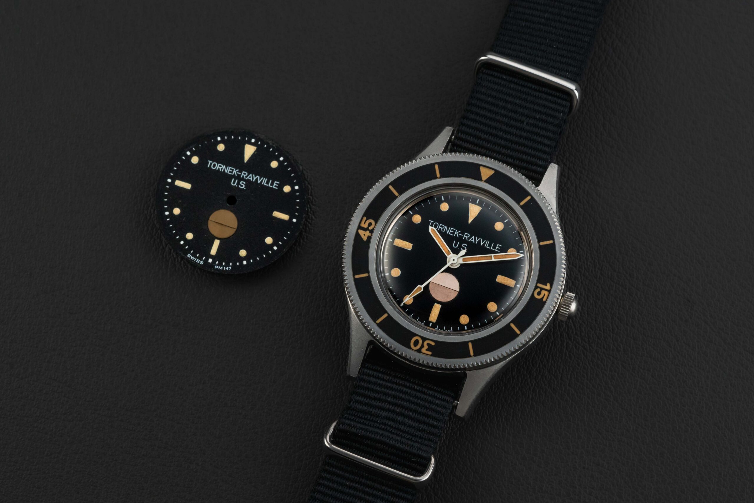 After the success by Blancpain with their Fifty Fathoms diver, and their universal acceptance by the Naval Unit of countries across the globe, a man by the name of Allen Tornek proposed that the US Navy also order and make use of the Fifty Fathoms dive watches in service. However, due to import restrictions (the US Government would only award contracts to those products produced in the USA), Blancpain was unable to sell the Fifty Fathoms to the US Navy. As such, Tornek sourced and modified movement parts from US manufacturers — just enough to be considered American-made — in order to satisfy the import restrictions; he slapped “Tornek-Rayville” on the dial, and the rest is history!